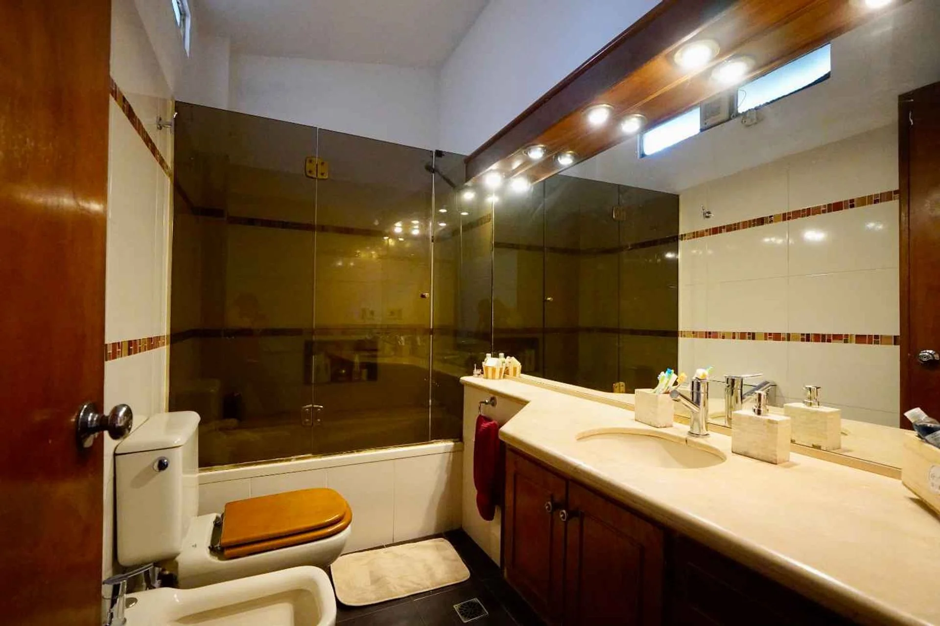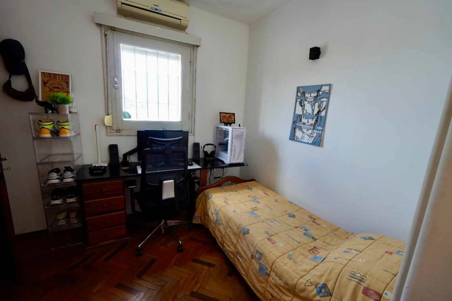 Dispone de 3 dormitorios, 4 baños y un cuarto/escritorio. El cuarto principal puede separarse en dos cuartos como lo era originariamente.