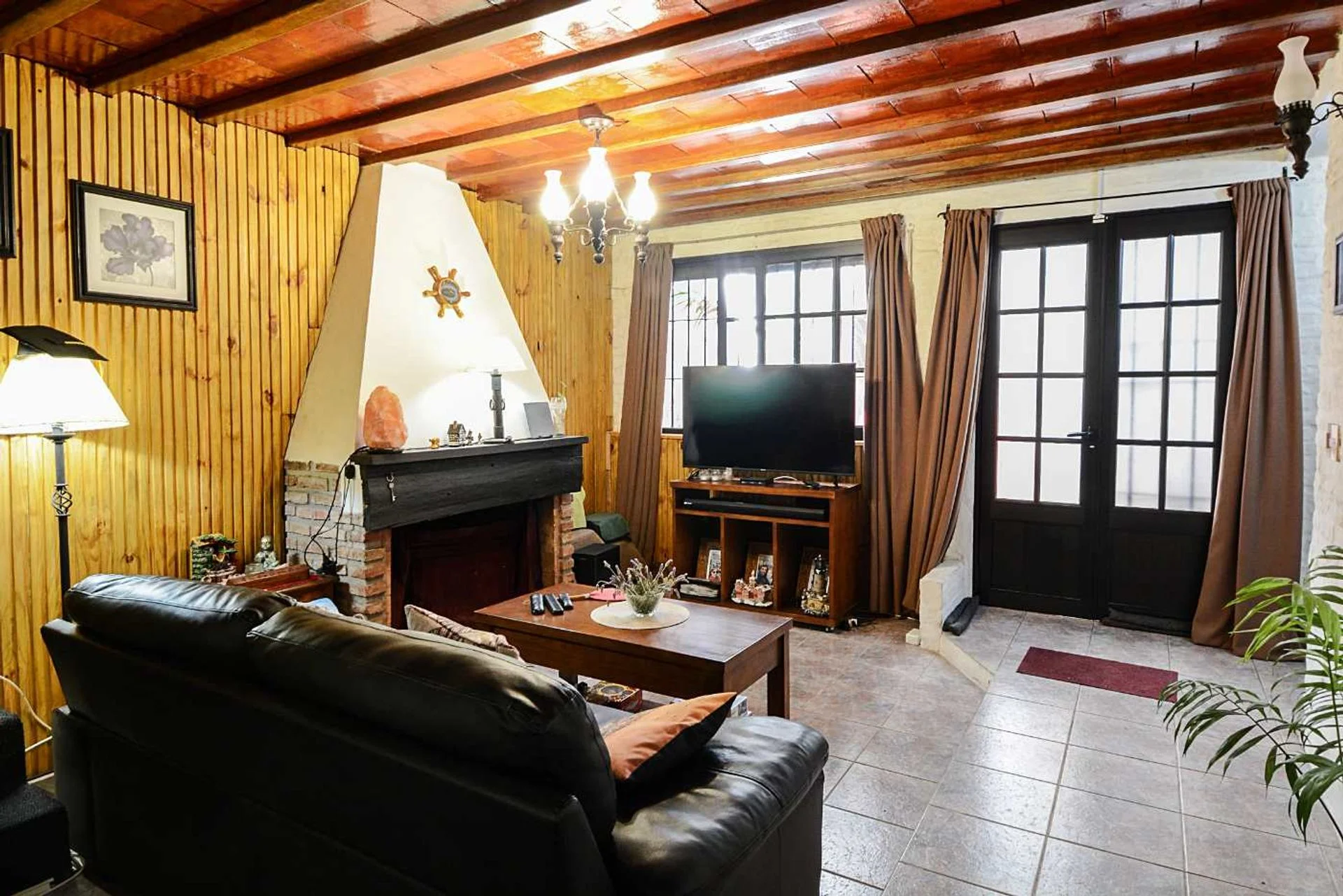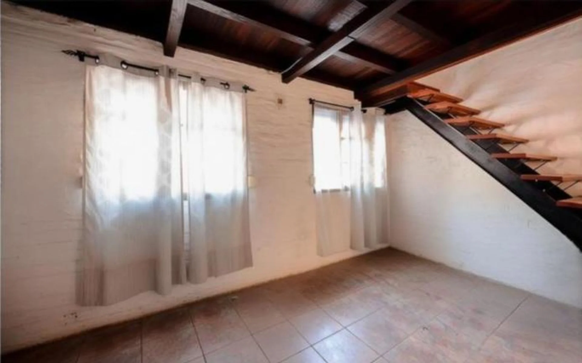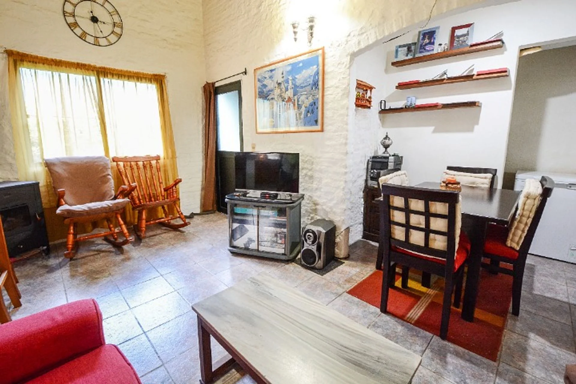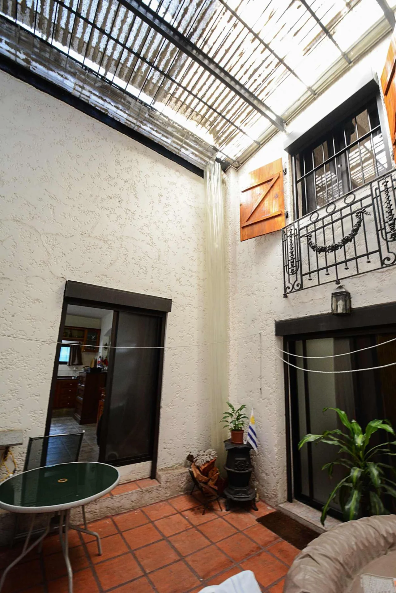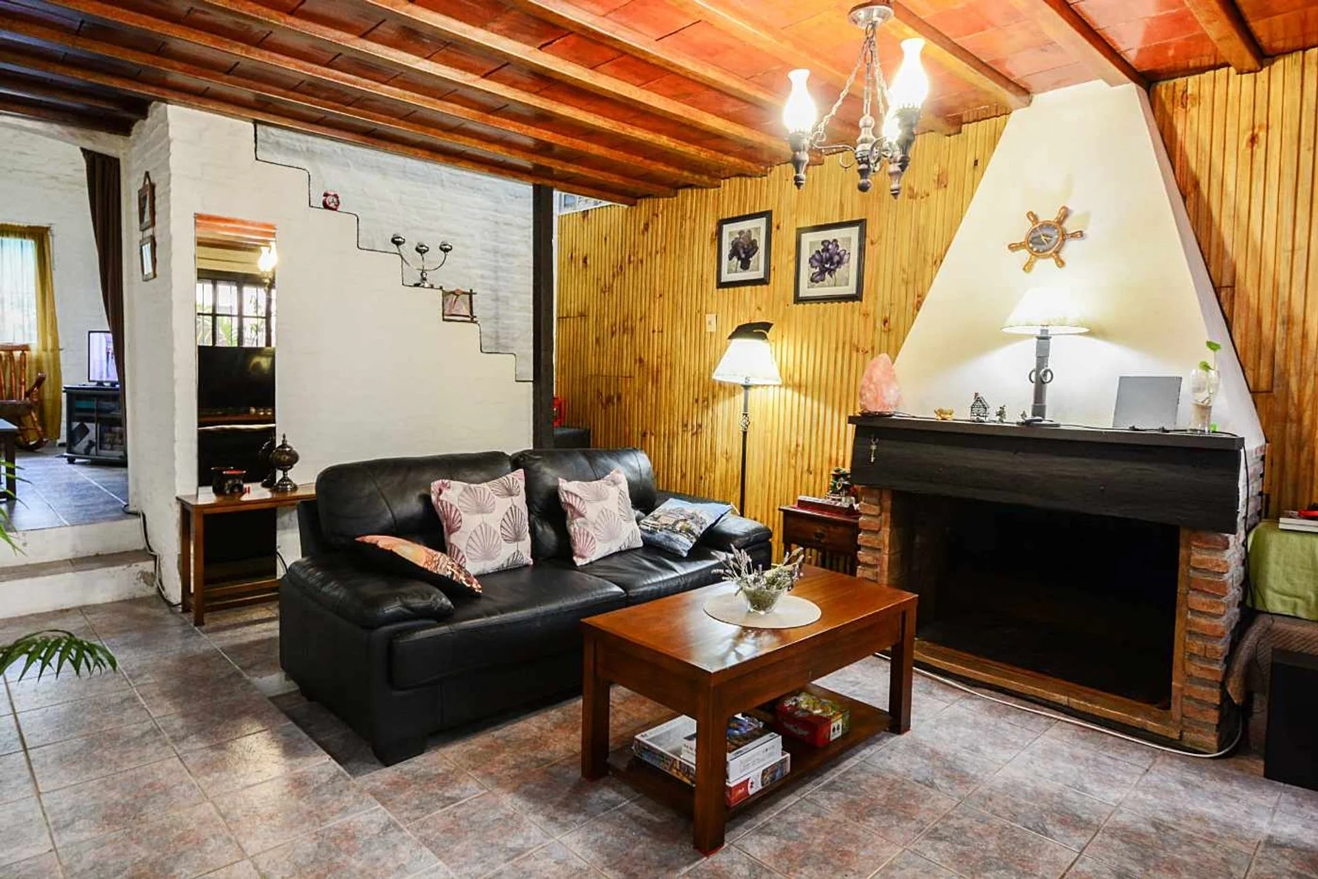 El living posee estufa a leña y ventana hacia uno de los patios, desde allí se accede a la planta alta.