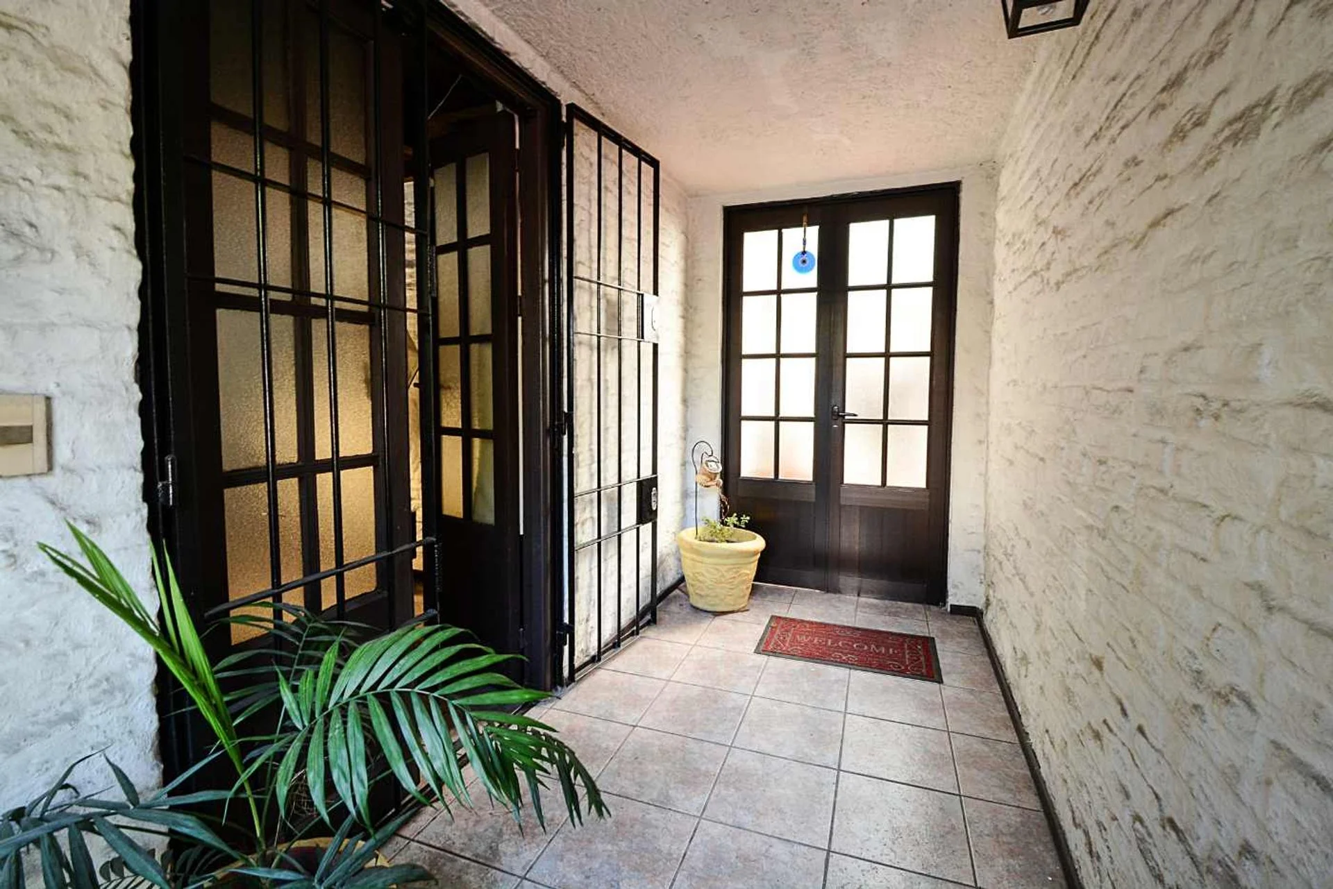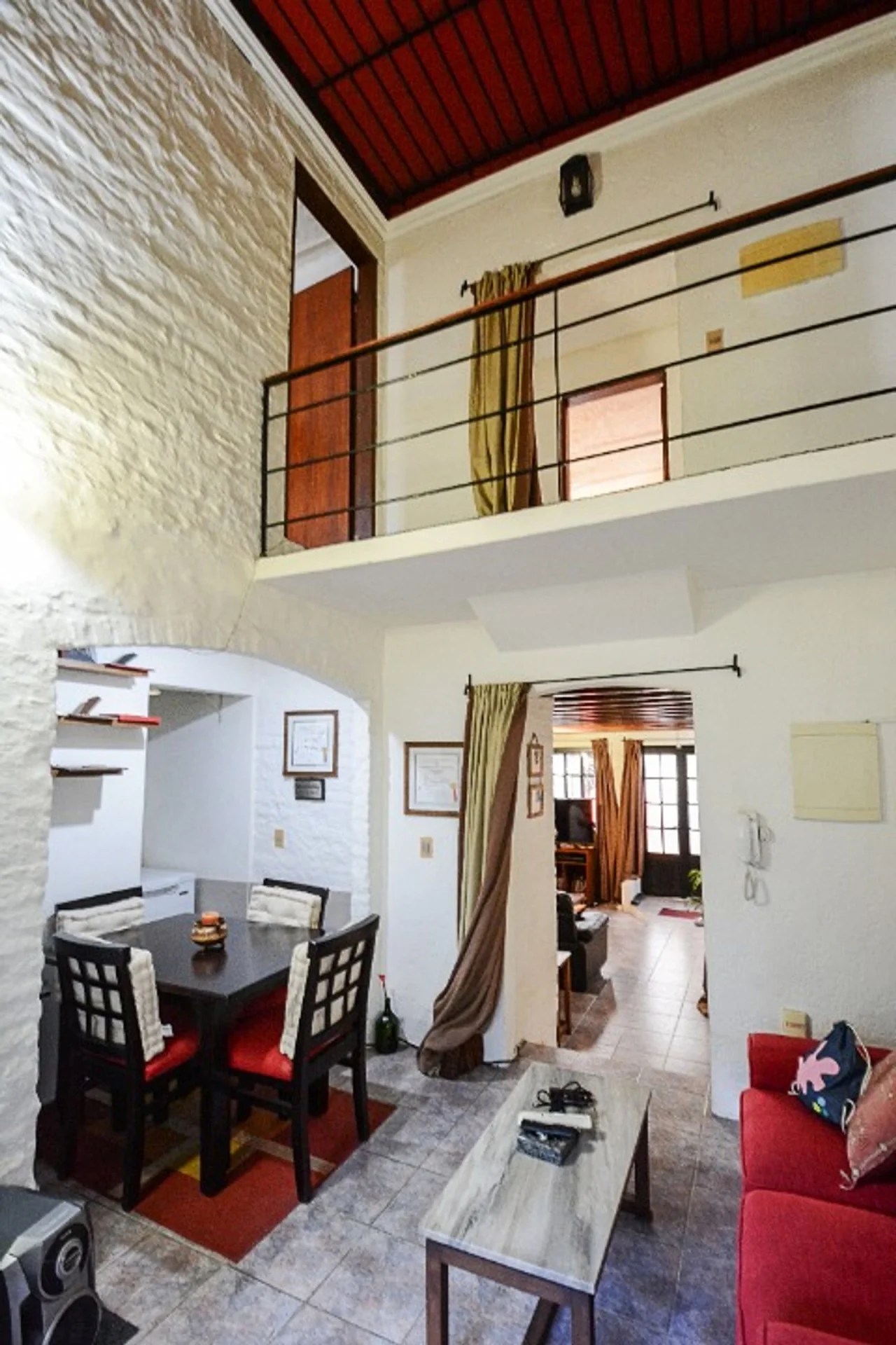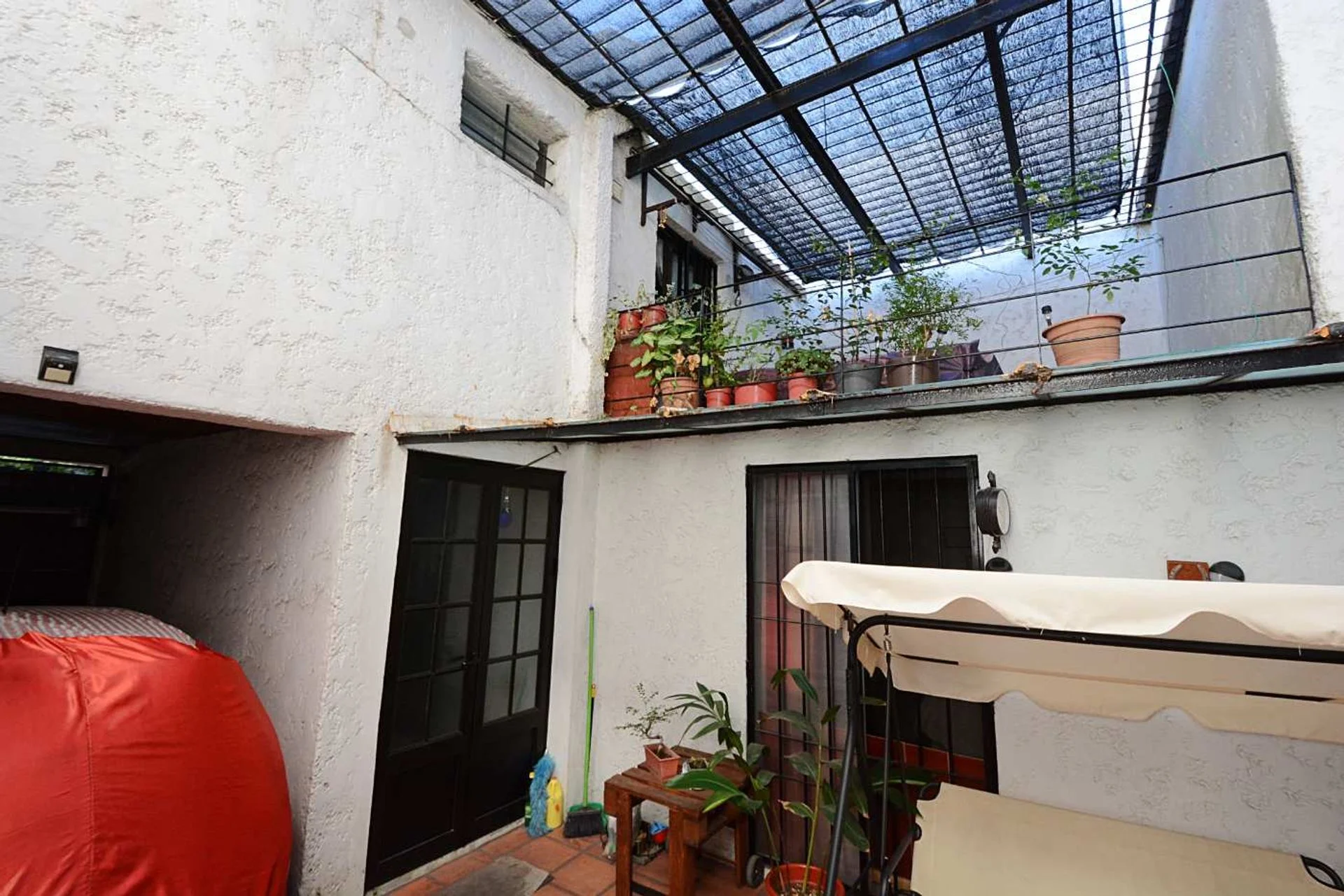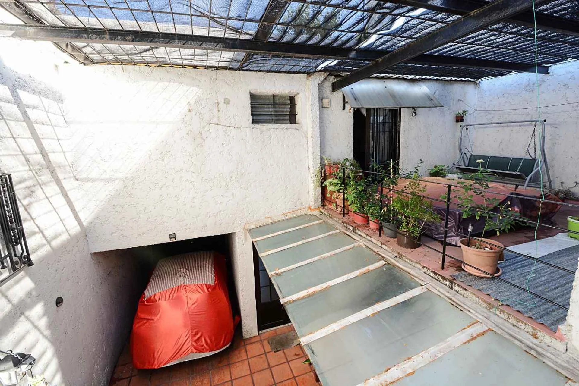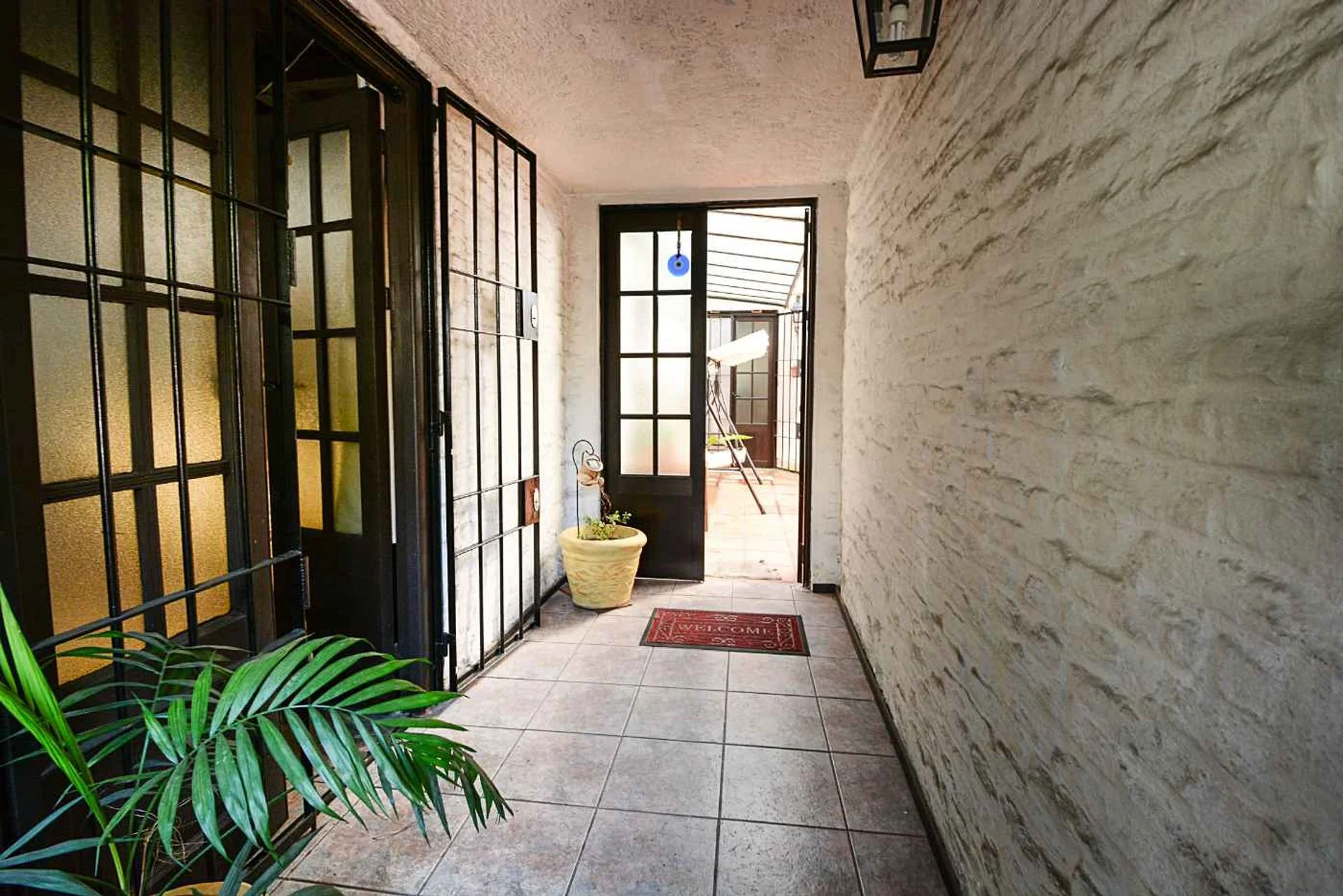 Al ingresar nos encontramos con un hall de distribución que conduce hacia el apartamento dúplex ubicado hacia el frente y a la casa principal, a la cual se accede a través de uno de los patios. El garage es cubierto.