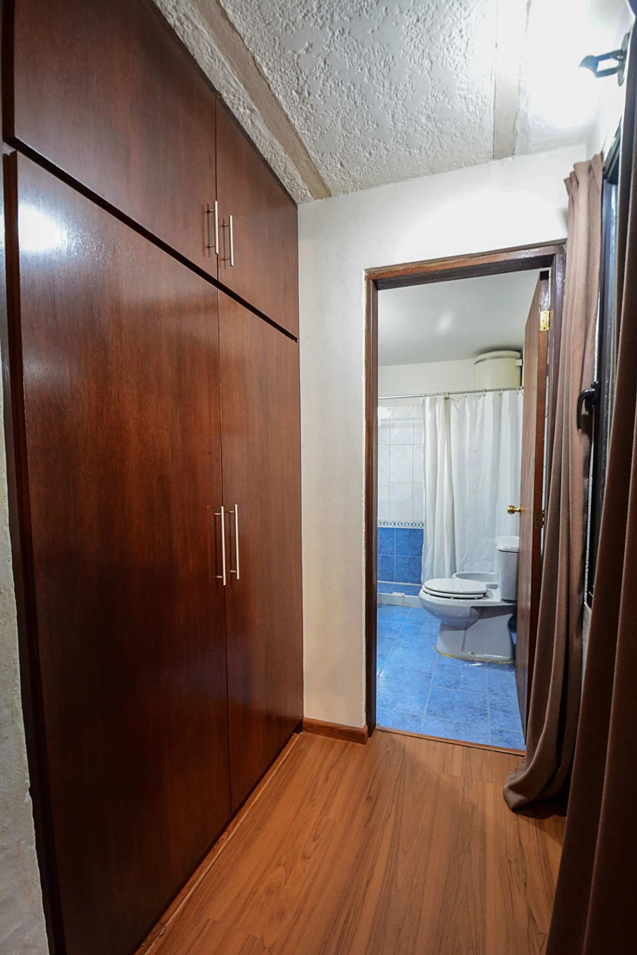 El dormitorio principal es muy cómodo, posee vestidor y baño en suite. Los placares son hechos a medida y cuenta con aire acondicionado. Tiene un balcón que da hacia el patio principal.