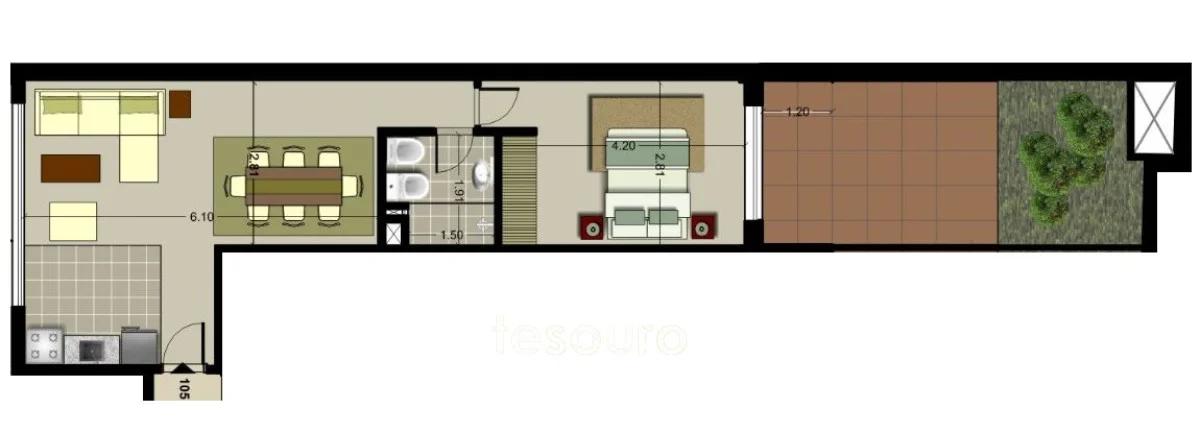 1 Dormitorio amplio al contrafrente con acceso al patio interno de 18 m2