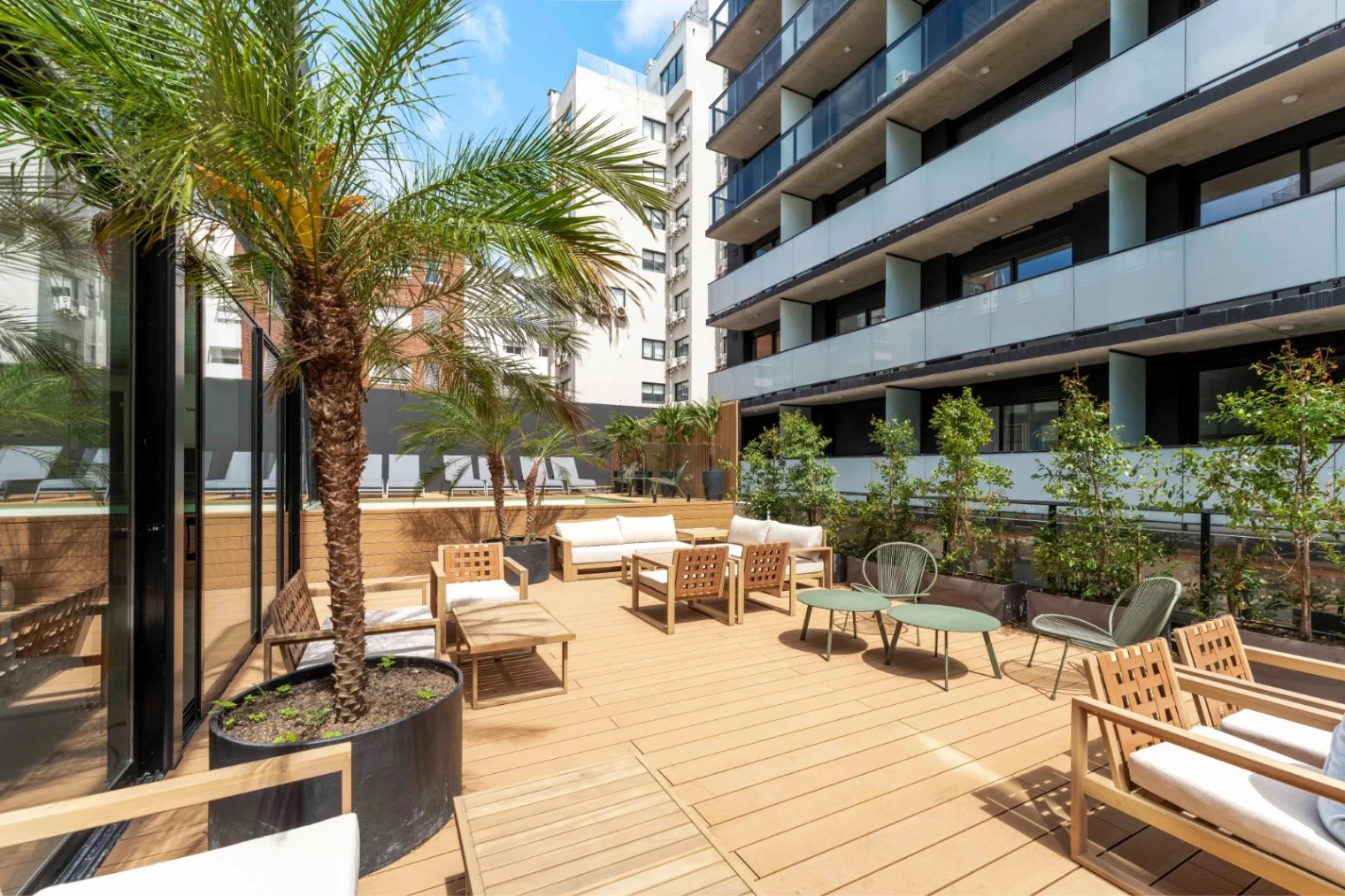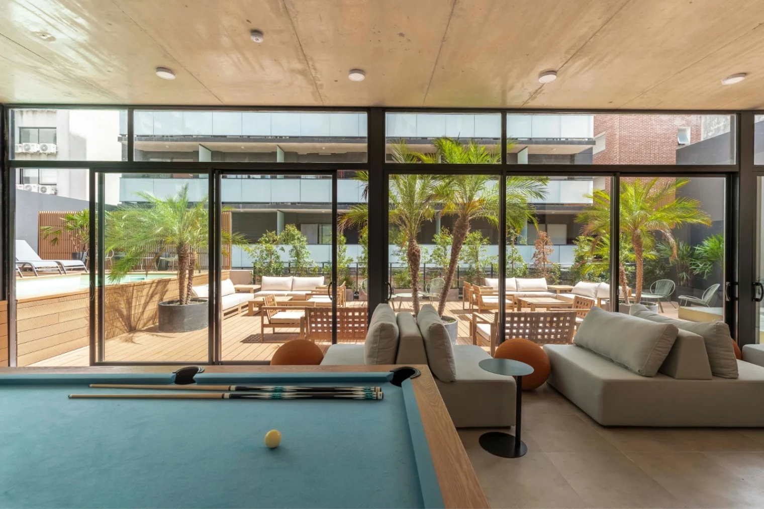 Este moderno inmueble cuenta con 39.7 m² de interiores y 7.9 m² de terraza. Superficie total: 47.6 m². Destaca por su gran luminosidad, gracias a amplios ventanales de piso a techo que ofrecen vistas excepcionales. Equipado con ventanas de tecnología DVH, proporciona un excelente aislamiento térmico y acústico, creando un ambiente propicio para el descanso.