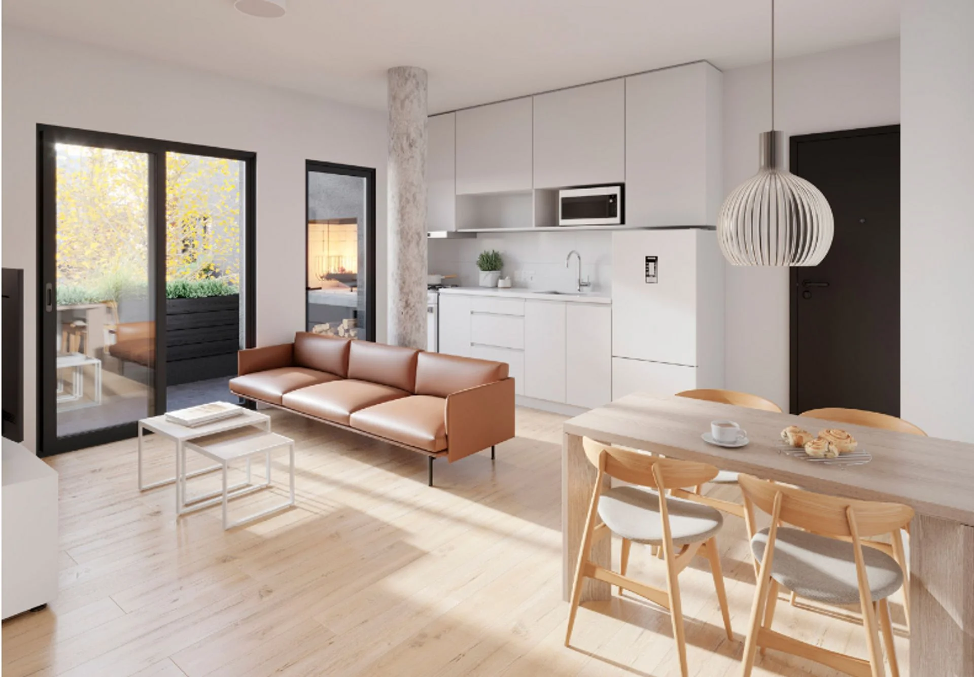 Este moderno departamento de 1 dormitorio de 43 m² te cautivará con su diseño funcional y su luminosa terraza privada.