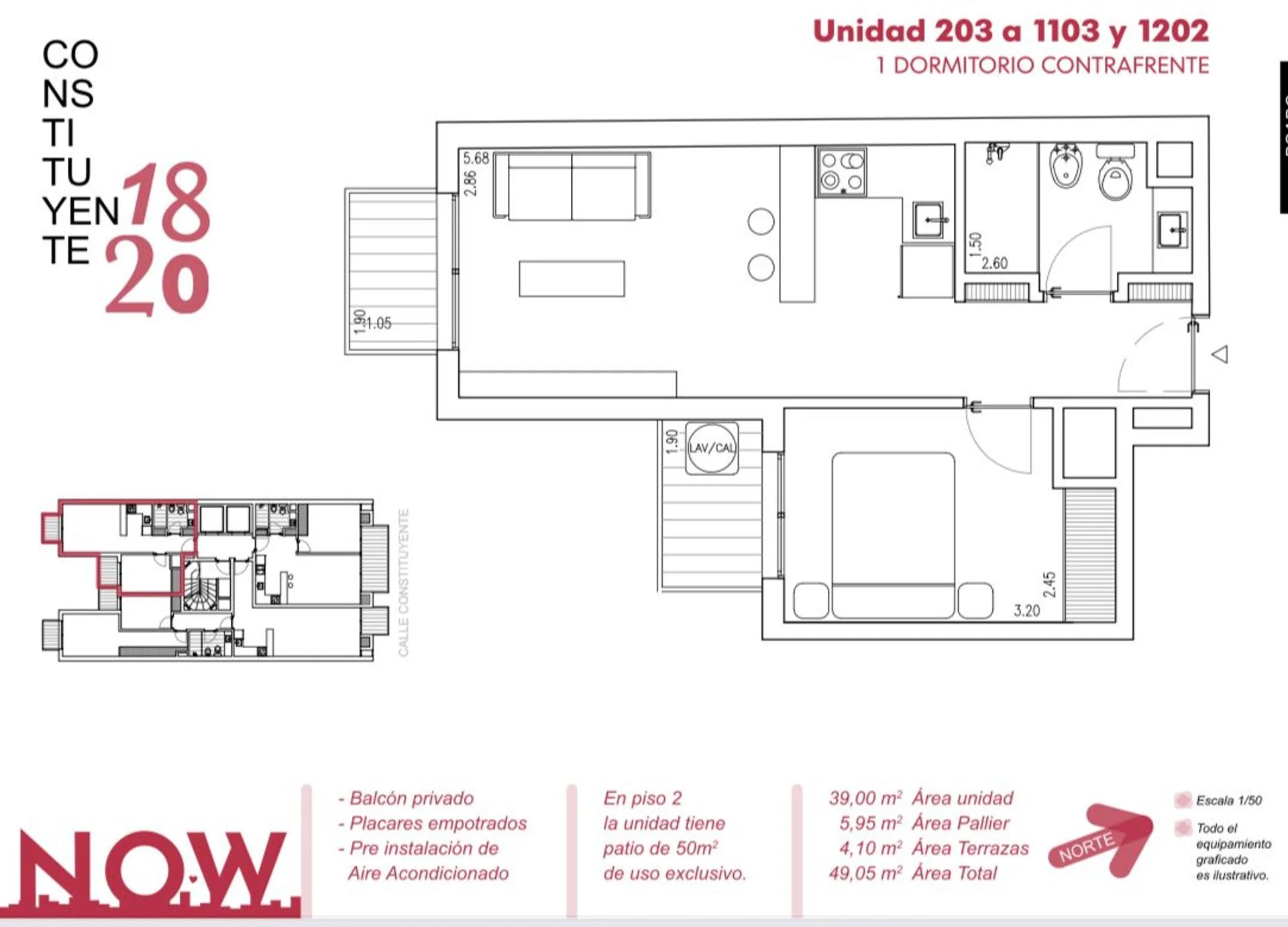 La unidad se desarrolla al frente con 39 m2 de área privada y 4 m2 de terraza, teniendo cómodas dimensiones para una excelente circulación en el área.
