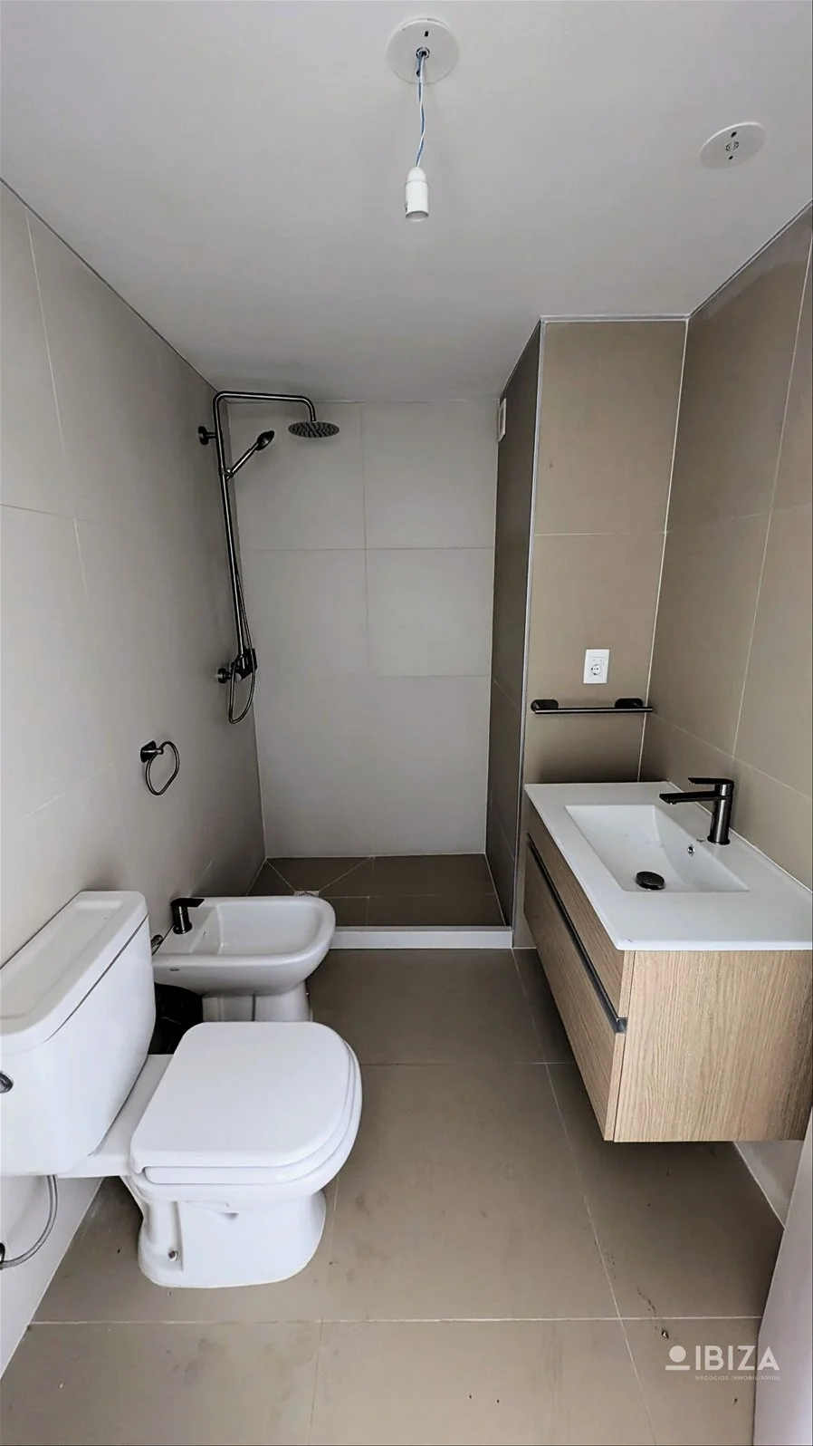 Baño completo con mueble bajo mesada y ducha doble.