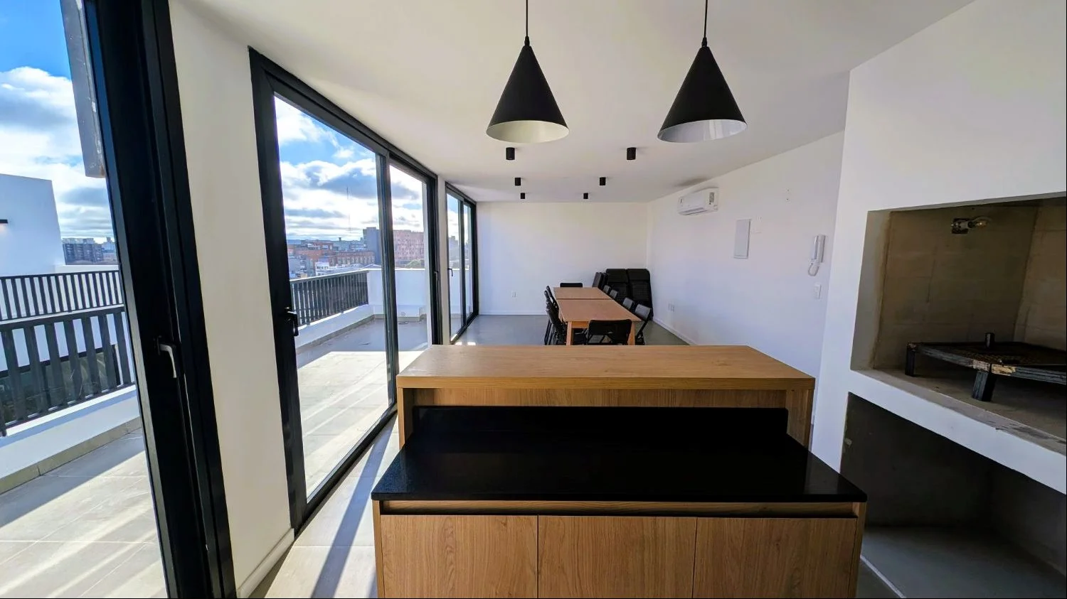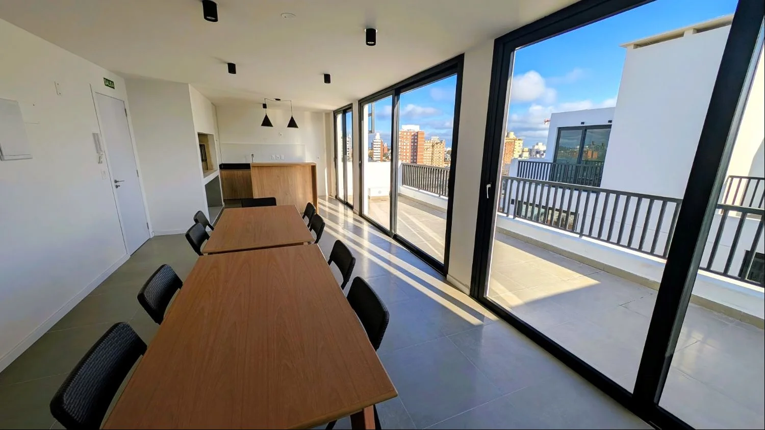 El edificio ofrece una propuesta integral de confort y servicios: hall de acceso con living, co-work y lockers. Jardín en espacio común y bicicletros. SUM equipado con mobiliario interior, mesas y sillas, con terraza en azotea y parrillero cerrado. Solárium con parrillero exterior y vistas despejadas a la ciudad, barra, mesas, sillas y reposeras. Lavadero colectivo con lava y secarropa, y gimnasio equipado.