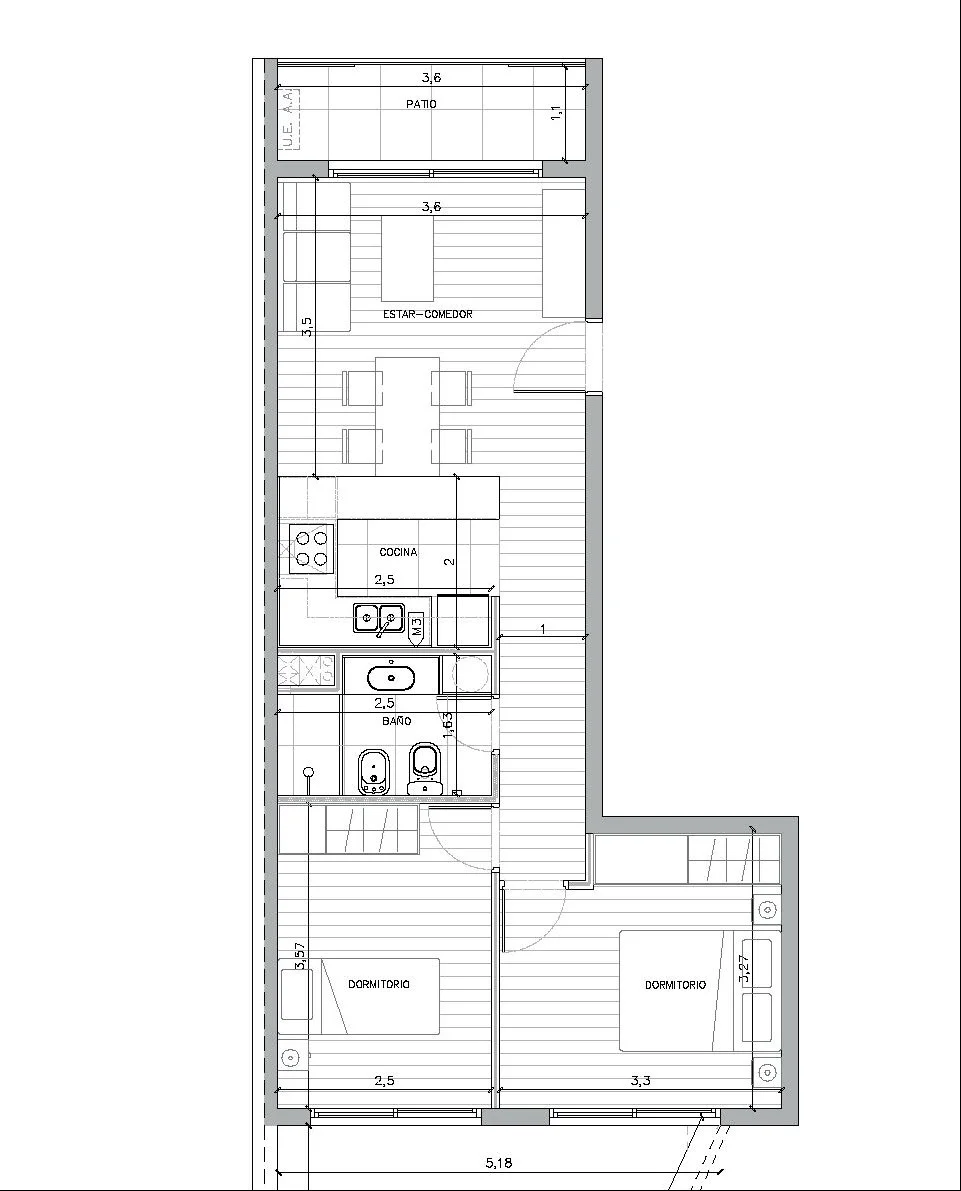 Desarrollo de construcción tradicional con materiales de calidad y diseño funcional y moderno. Unidad de 2 dormitorios con buena distribución y terraza exterior. Amplio living-comedor con cocina integrada, terraza y vista a un patio interior. Dos dormitorios y baño completo. Instalación de cañería para teléfono, TV cable, alarma, aire acondicionado, wi-fi, portero eléctrico y cerradura electrónica.