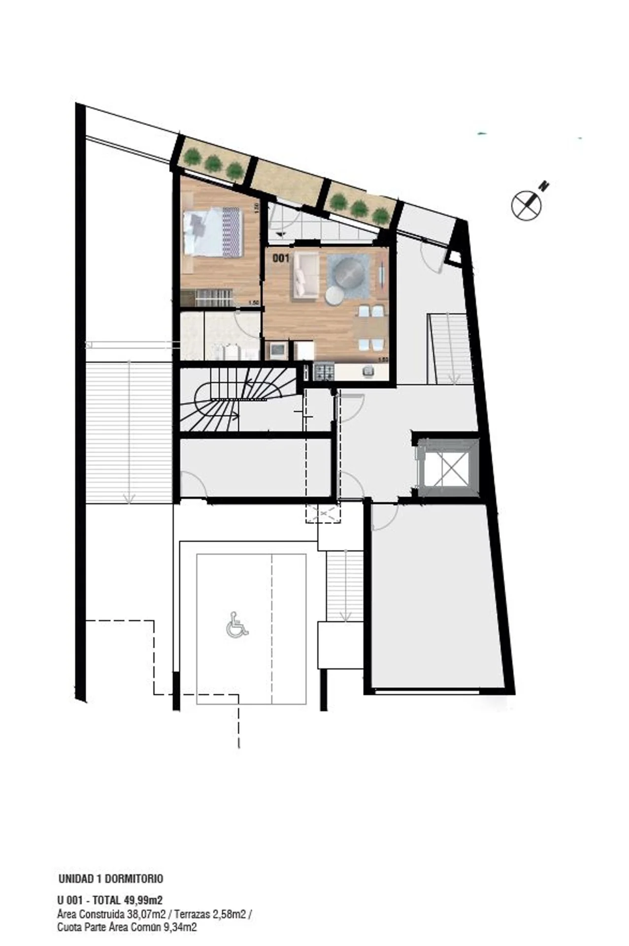 UNIDADA 902, Piso 9, 52.99 m2 edificados, terraza 4.61 m2 aprox. Orientación NO, Contrafrente. Precio: 139.500 usd