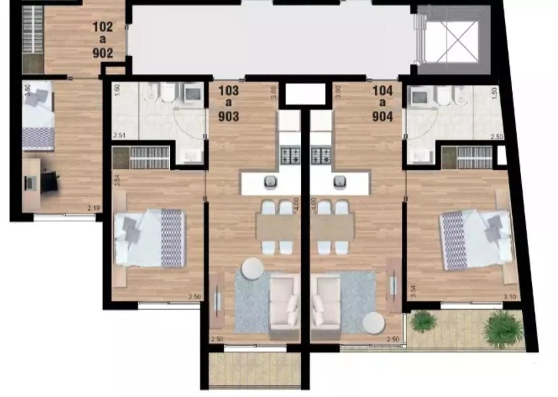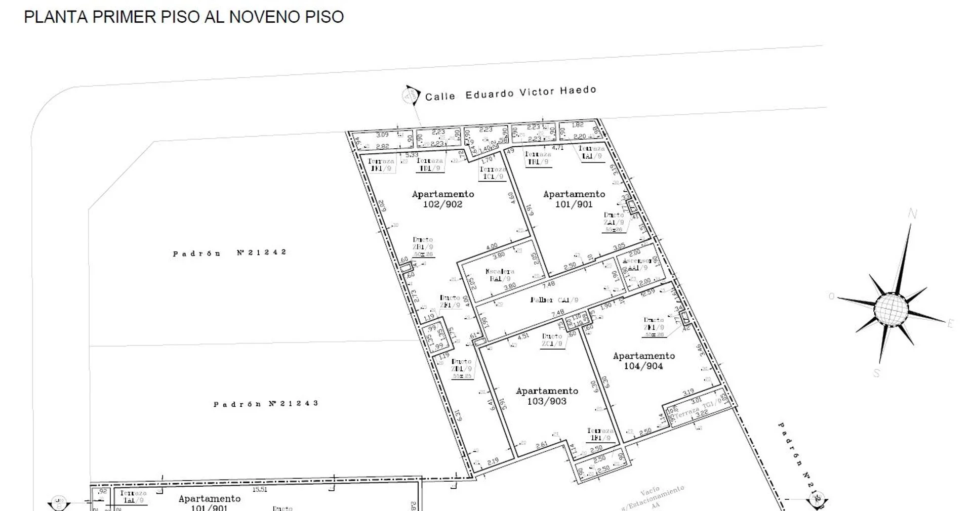 UNIDADA 903, Piso 9, 49.1 m2 edificados, terraza 2.25 m2 aprox. Orientación SE, Contrafrente. Precio: 124.500 usd VENDIDO