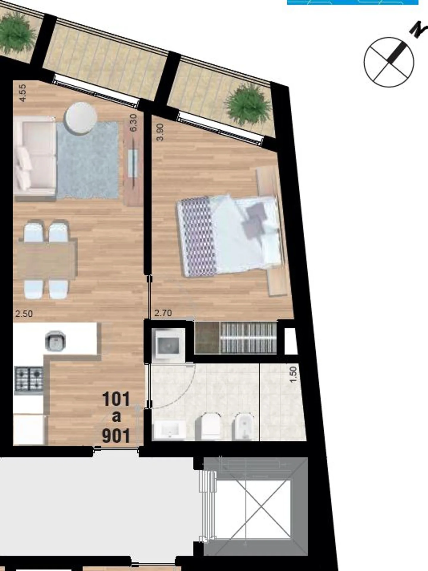 3.80m2 aprox. UNIDAD 201. Orientación NO, frente.