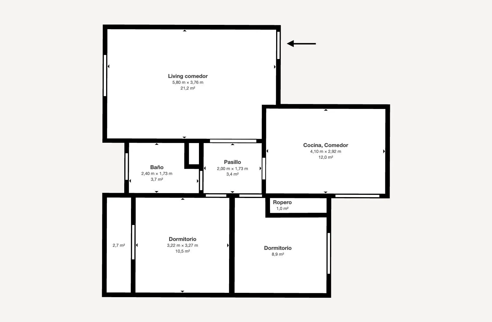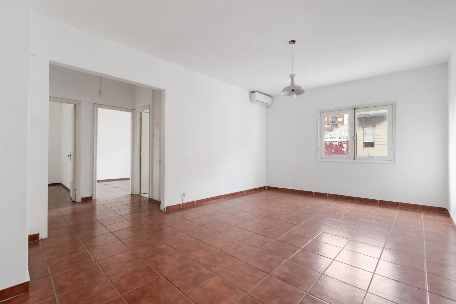 Living-comedor espacioso, con ventana al frente y orientación este. Piso de cerámica en muy buen estado. Aberturas de madera pintadas de blanco. Aire acondicionado instalado.
