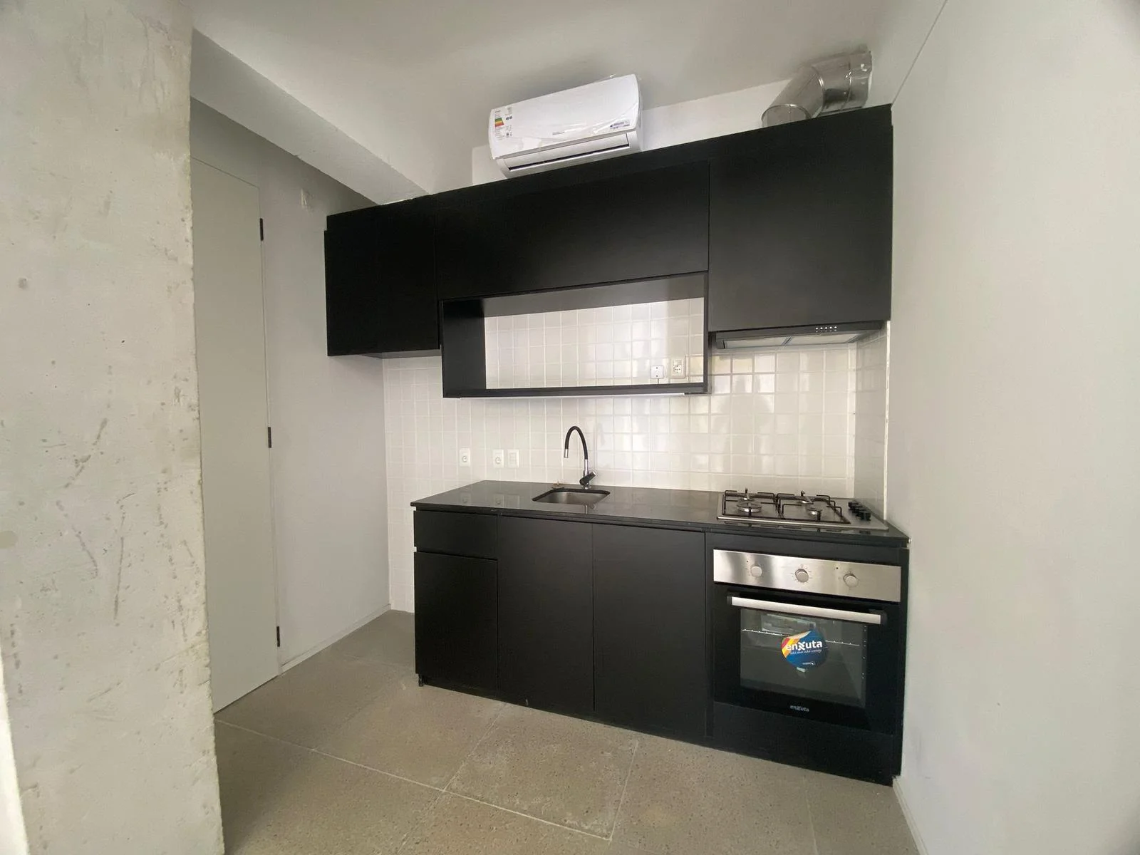 Cocina integrada con placares, anafe , horno eléctrico, campana extractora y aire acondicionado.