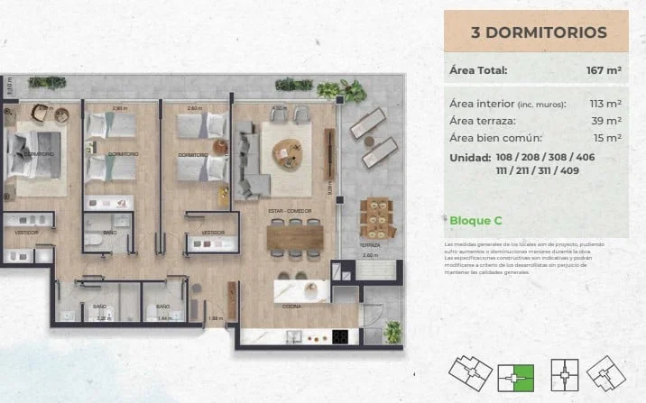 Además tendrá portero eléctrico, wifi, laundry y cctv.