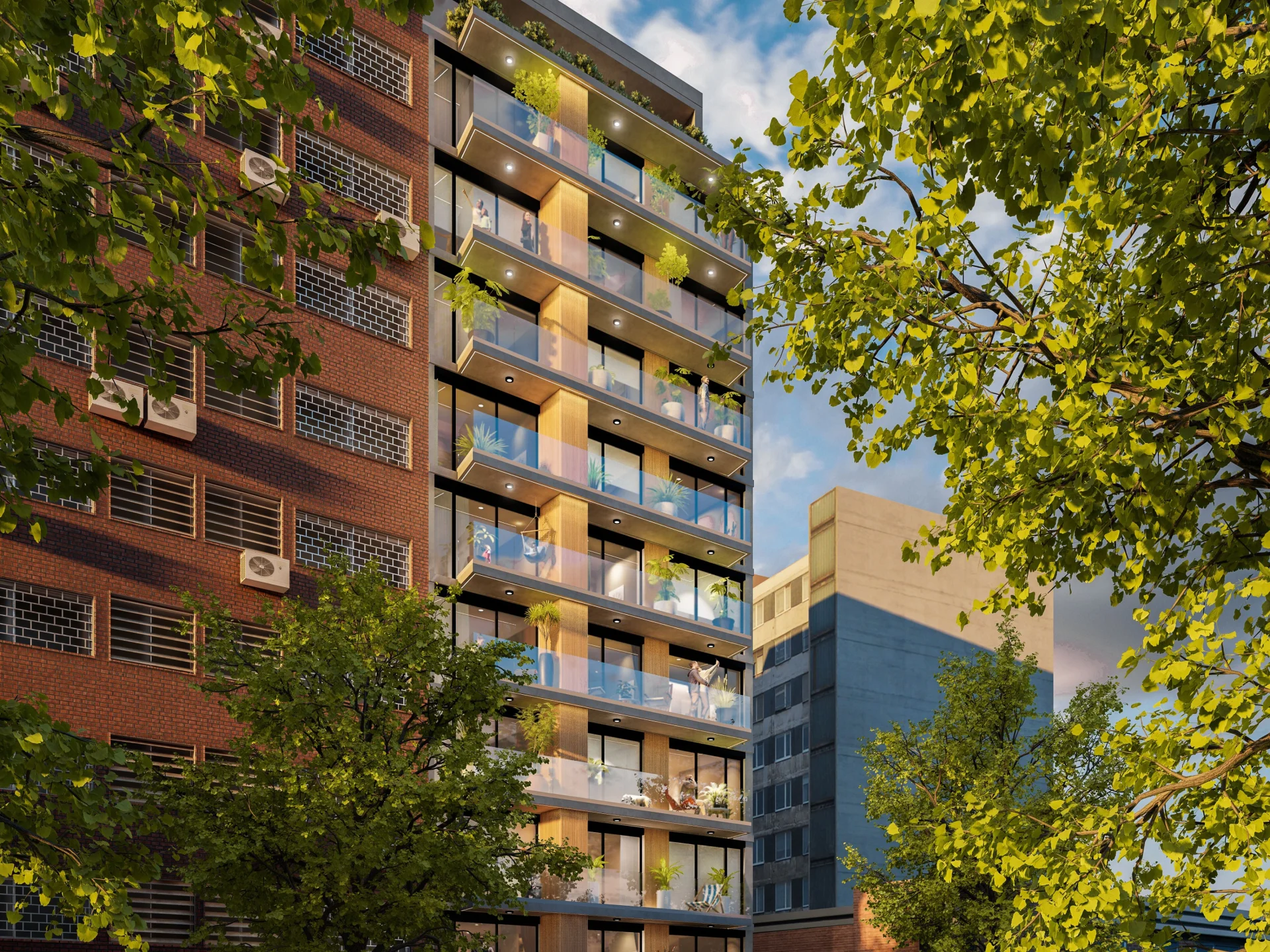 La unidad se entrega con persianas en el dormitorio, anafe y campana en la cocina, y extractor y calefón en el baño.