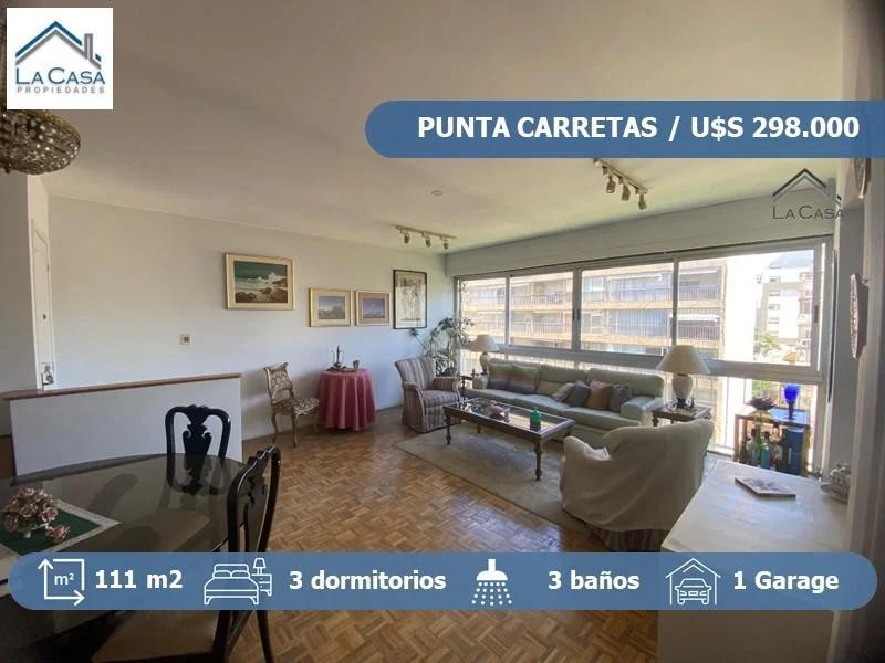 Apartamento de muy buena categoría, consta 3 dormitorios mas servicio, 3 baños y garaje en Punta Carreta, limite Pocitos.