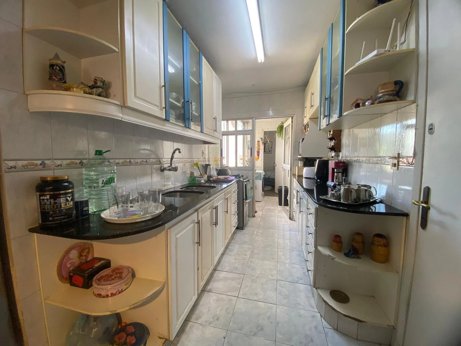Cocina definida con comedor diario, doble mesada y profusión de placares.