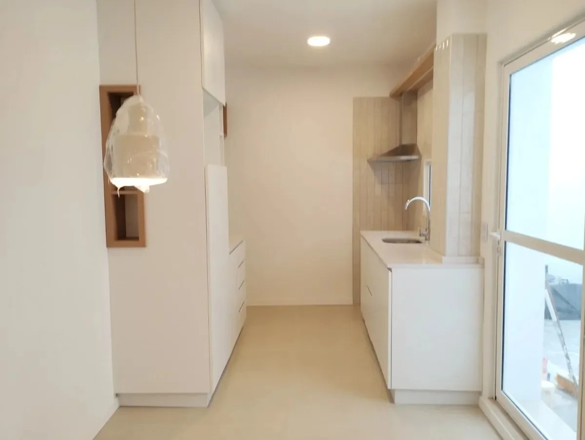- Comedor con cocina integrada con muebles, y campana