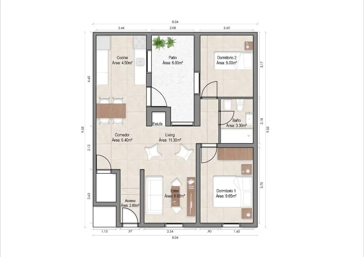 - Patio interno de 6m2