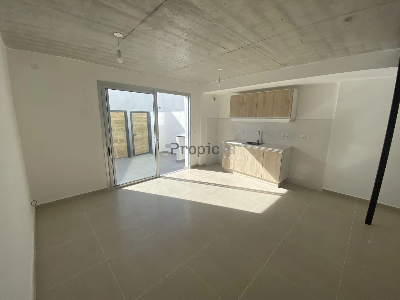 Apartamento a estrenar, moderno dúplex con patio Estrena este hermoso apartamento de dos plantas, amplio, luminoso y con un diseño moderno. La unidad cuenta con una superficie total de 56 m2, de los cuales 41,3 m2 son interiores y 14,7 m2 corresponden a un patio de uso exclusivo. Características principales: 1 dormitorio 1 baño completo Living-comedor con cocina integrada Muebles de cocina en tonos madera clara Patio Grandes ventanales con excelente entrada de luz Pisos de porcelanato en planta baja y símil madera en planta alta Escalera metálica con barandas negra Zona tranquila, con buena conectividad y servicios cercanos. A estrenar – ideal para alguien que busca comodidad, estilo y un espacio con luz natural. Comisión inmobiliaria 3% mas IVA