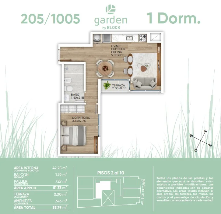 Venta de apartamento de 1 dormitorio en Garden - La Blanqueada, ubicado en Av 8 de octubre a pasos de la Av. Luis A. de Herrera, punto estratégico de la ciudad que te facilita el día a día.