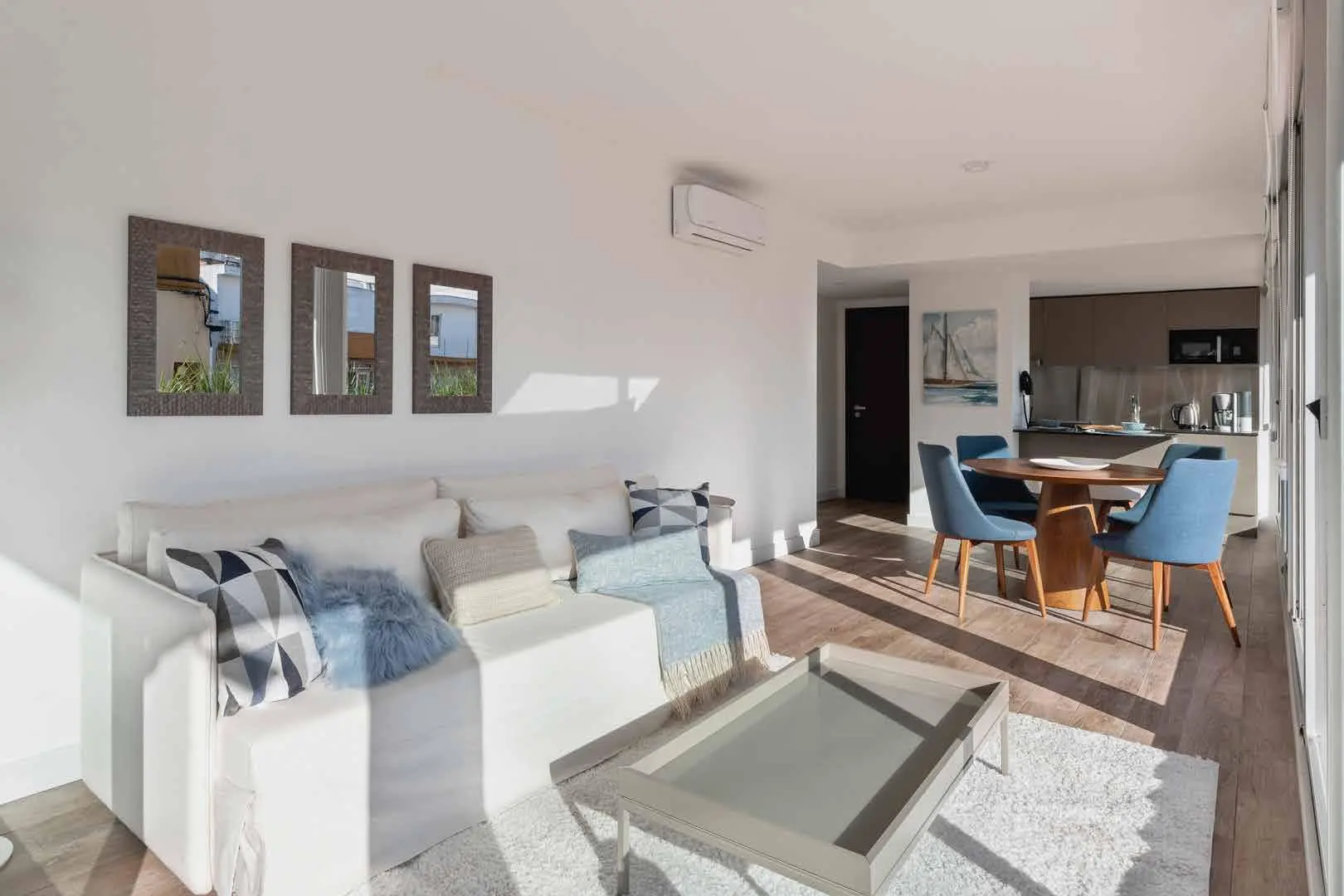 Piso 11 al frente con orientación Oeste. Living comedor con cocina semi integrada mediante barra.