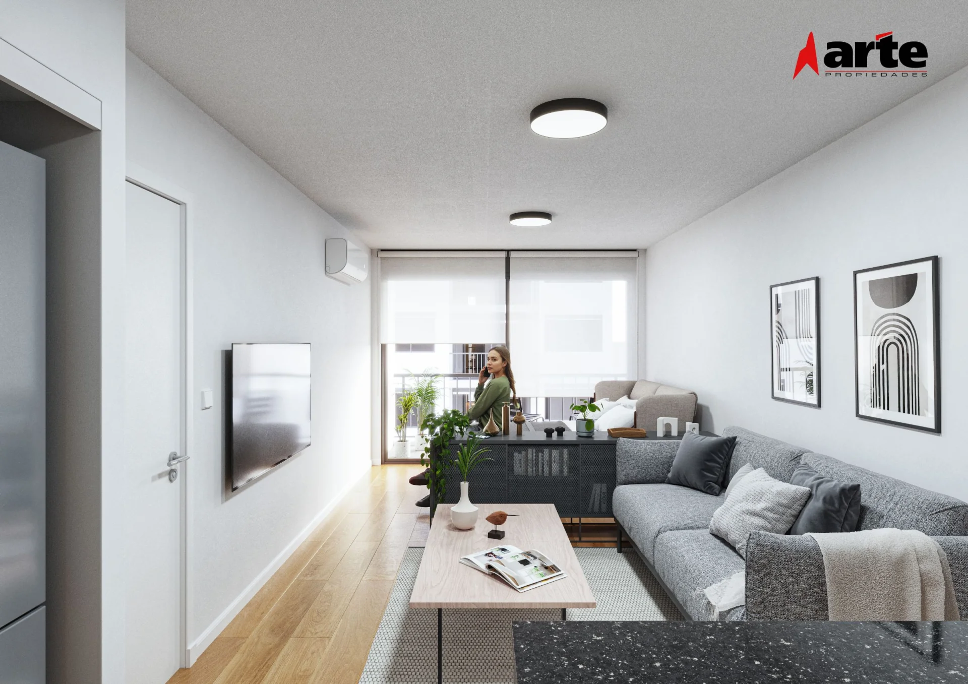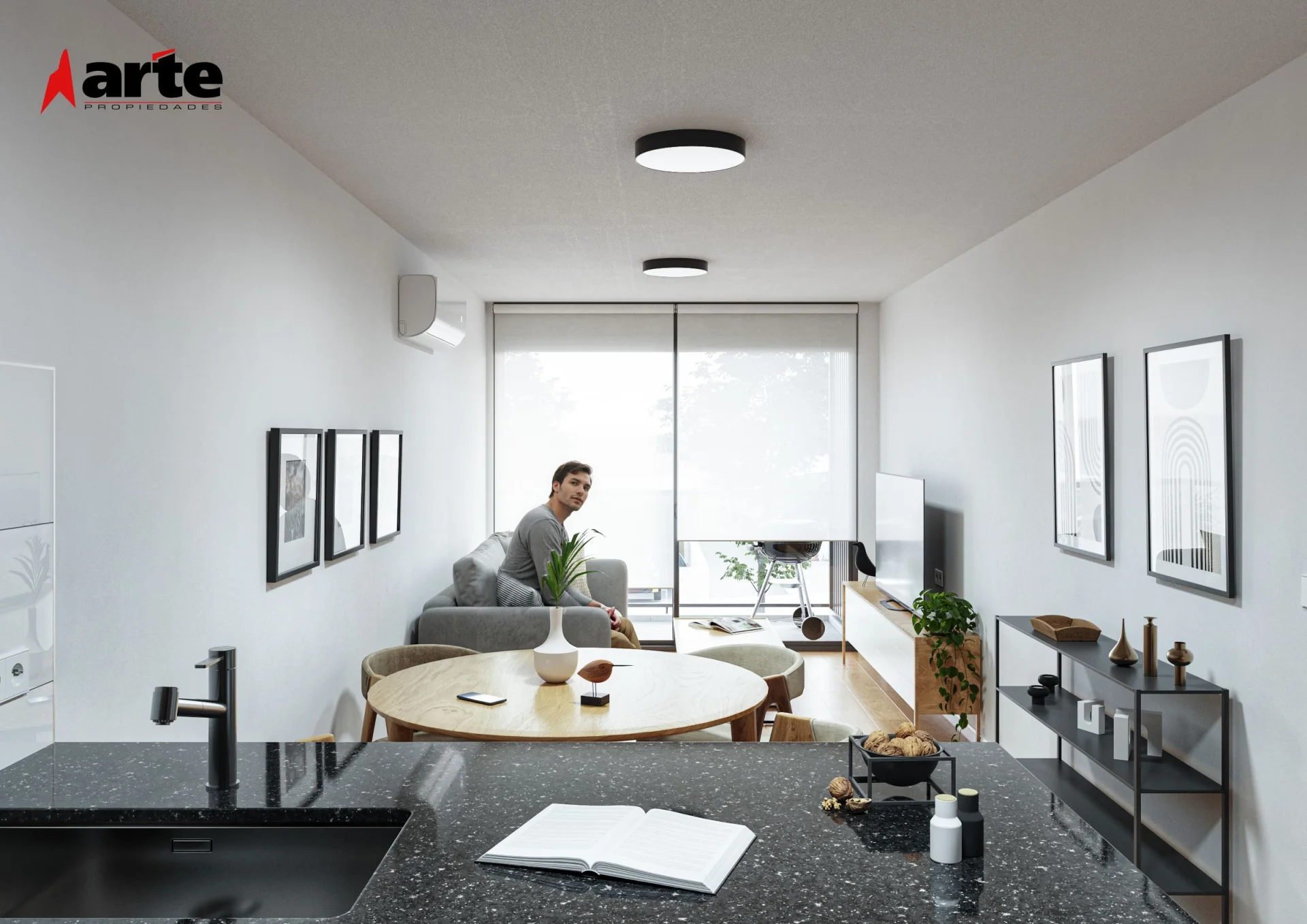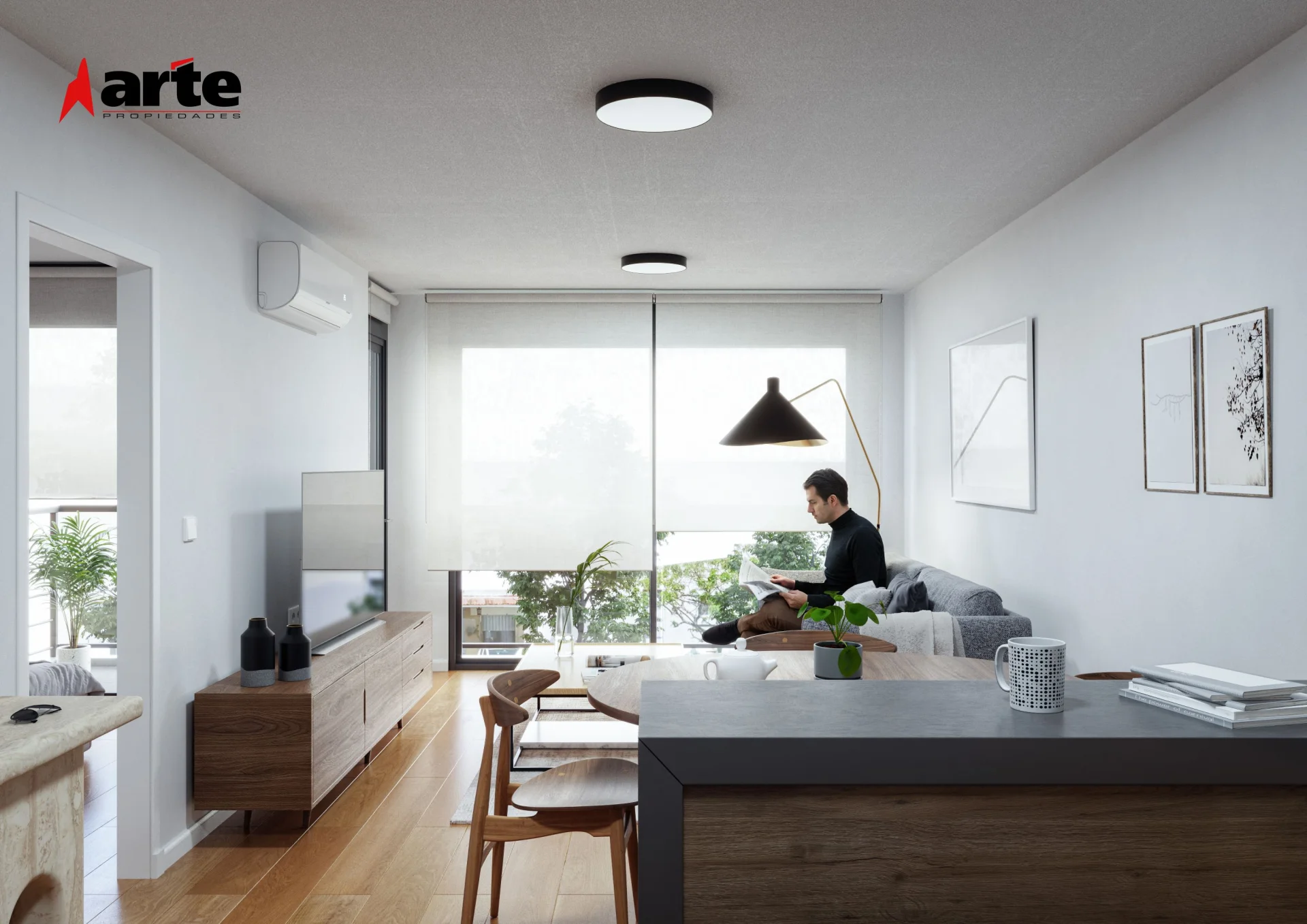Apartamento de buenas dimensiones, dormitorio principal en suite, cocina integrada y terraza.