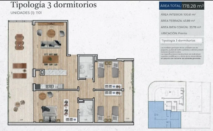 Cómodos dormitorios, el principal en suite y con balcón. Los otros dos dormitorios son al contrafrente con orientación Este, ambos con terraza.
