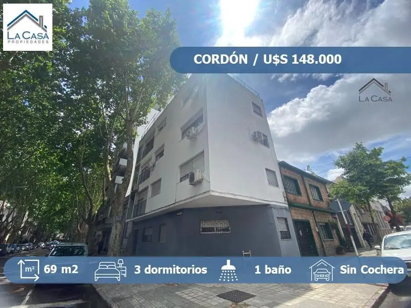 Apartamento a la venta en el Barrio Cordón, todo al frente, en un segundo piso por escalera.