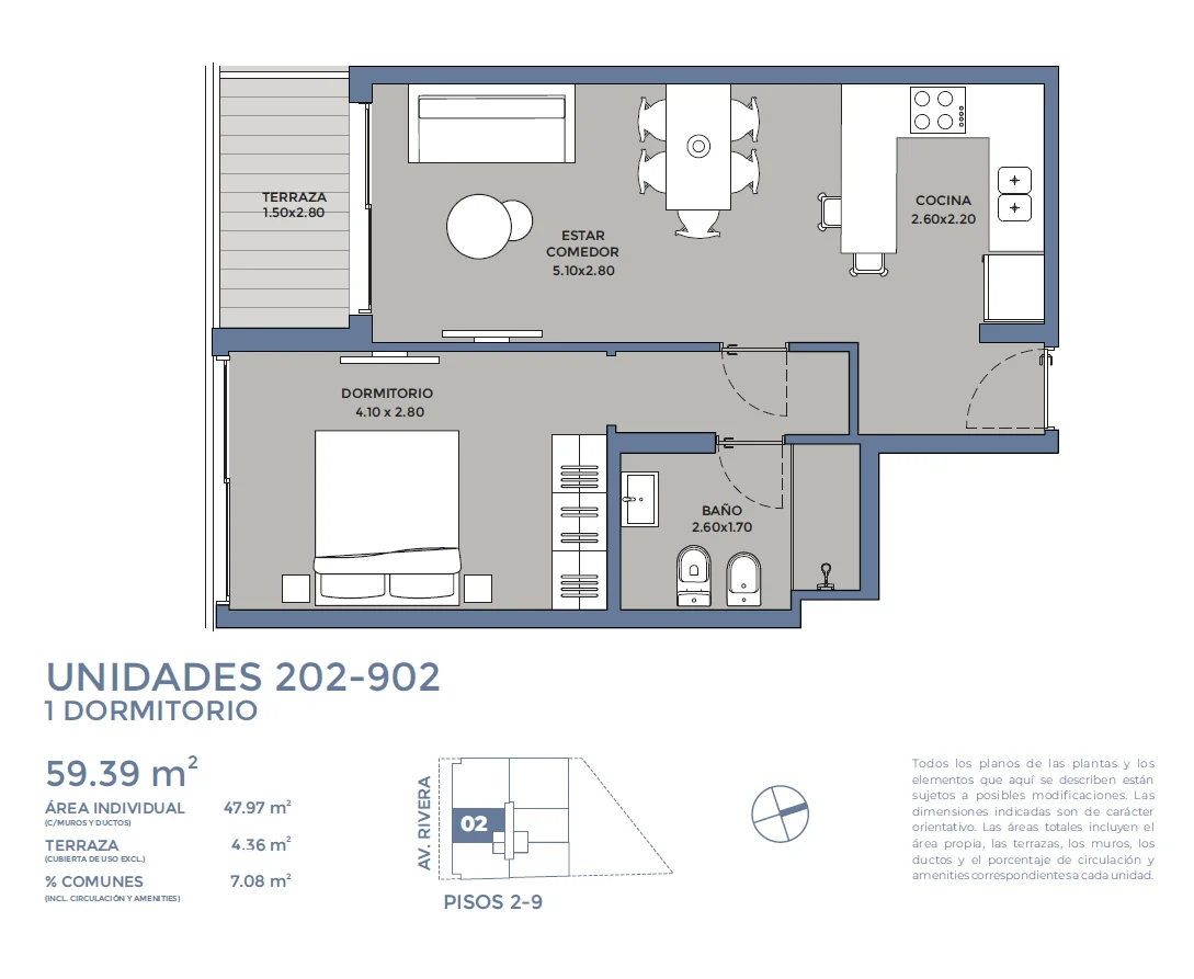 Apartamento en venta de 1 dormitorio en Brío Rivera, ubicado en Rivera ente Ponce y Obligado - Pocitos, incomparable en términos de comodidad y accesibilidad. Estamos sobre unos de los principales conectores este - oeste, a pocas cuadras del Parque Batlle.