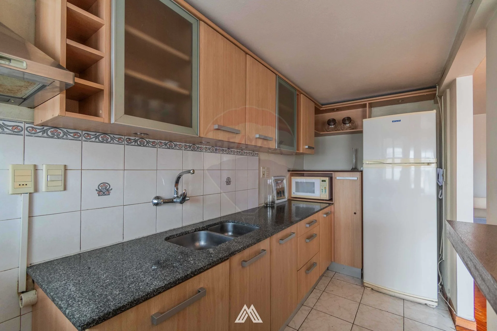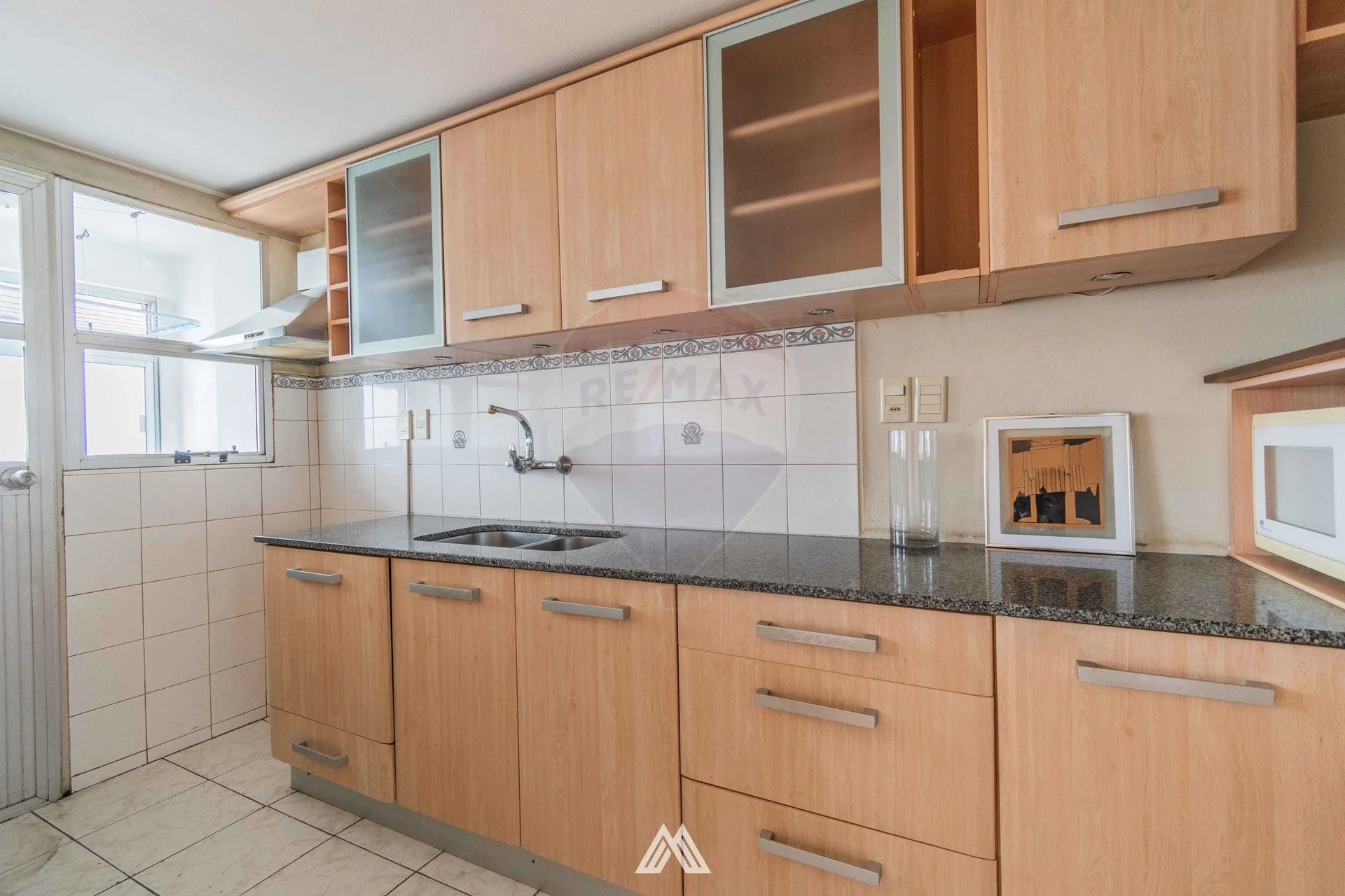 Cocina semi integrada al frente con terraza lavadero. Muebles bajo y sobre mesada hechos a medida de muy buena calidad.