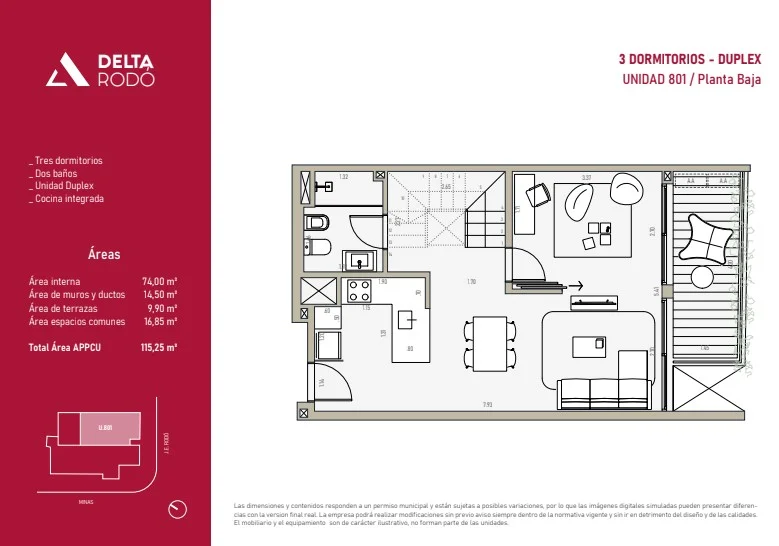 Apartamento Duplex de 3 dormitorios en Delta Rodó, ubicado en el corazón de Cordón - José Enrique Rodó y Minas - A pasos de la variada oferta gastronómica, de universidades y de teatros.