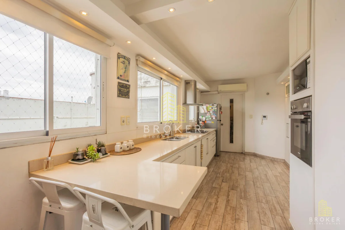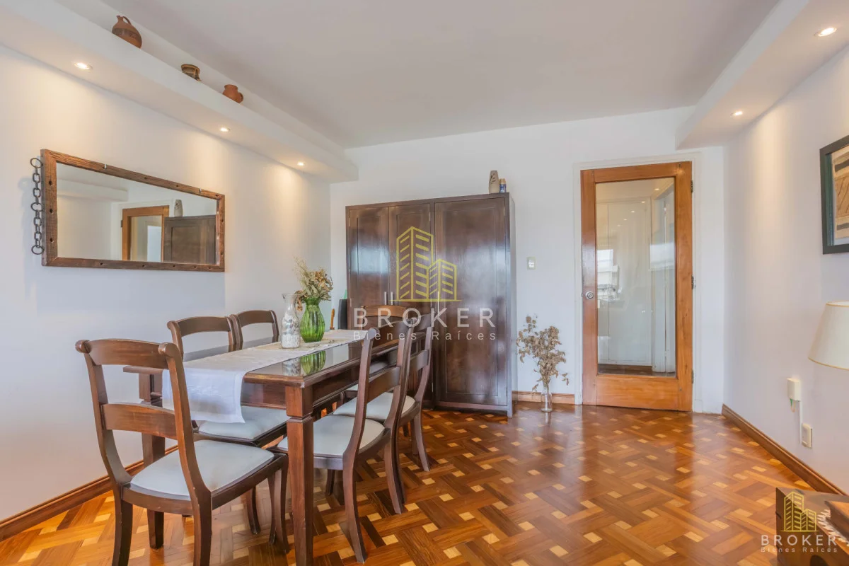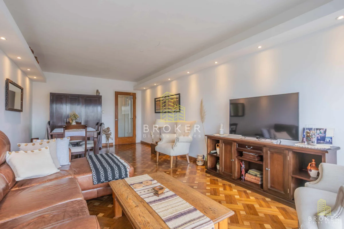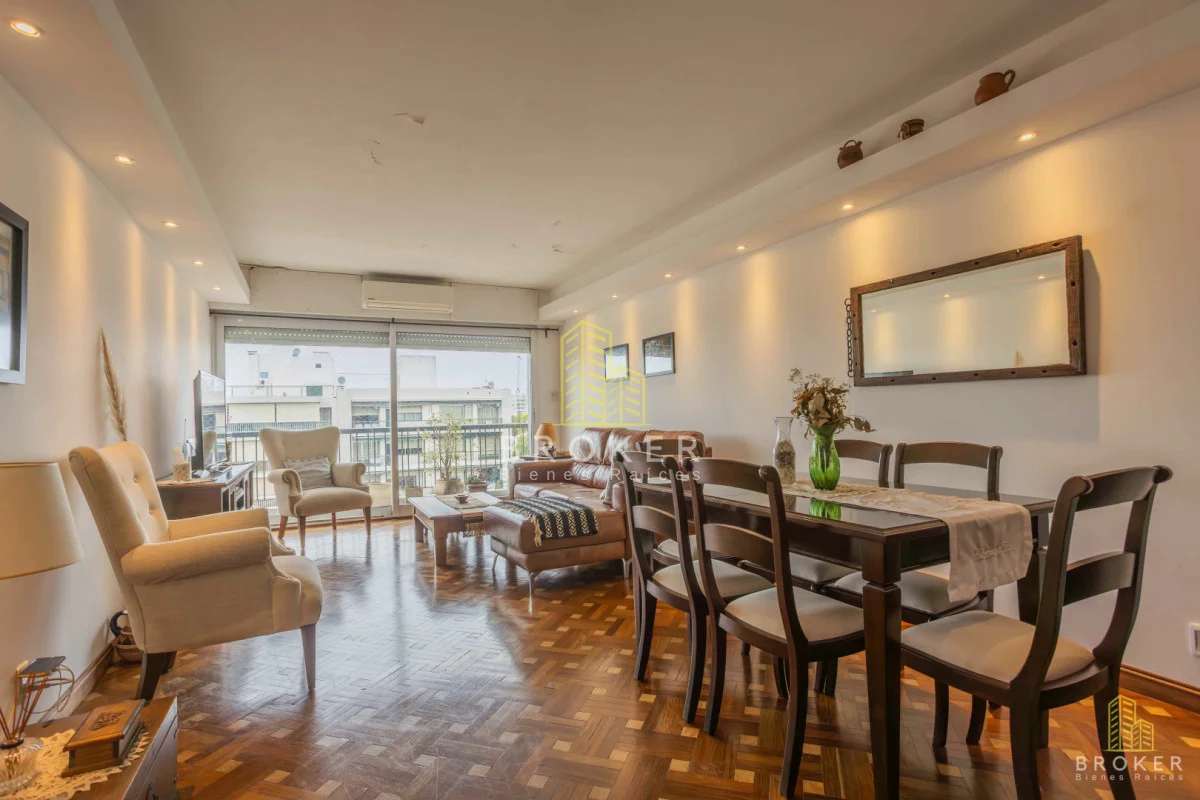 AMPLIO Y LUMINOSO APARTAMENTO EN MUY BUENA UBICACIÓN Piso alto en edificio de excelente construcción y excelente mantenimiento. El apartamento cuenta con recibidor, amplio living comedor muy luminoso con ventanales y salida a balcón con vista despejada. Cocina reciclada muy amplia, con comedor y toilette. Gran baño a nuevo y toilette también a nuevo. Tres dormitorios, dos de ellos de buenas dimensiones, dormitorio principal con balcón. Pisos de parquet y cortinas de enrollar. Calefacción central a gas de cañería en todos los ambientes. Gran Garaje con entrada directa, excelente ubicación. Gastos comunes $16.000 Admite préstamo bancario. Referencia Interna : Tera-10095