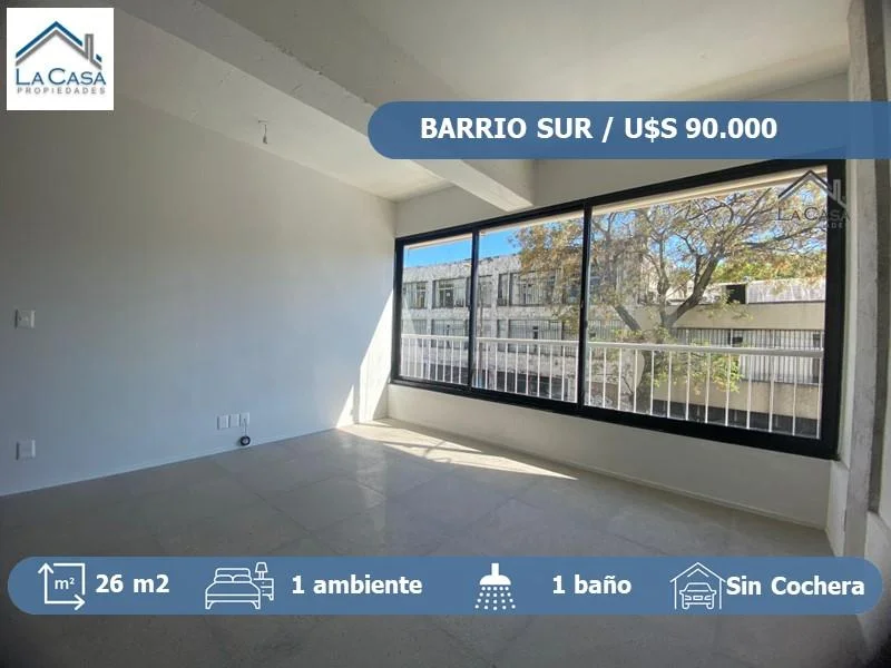 Monoambiente a la venta, a estrenar, en Barrio sur, sobre Isla de Flores. Primer piso por escalera, al frente, con orientación norte y gran ventanal, lo que lo hace muy luminoso. Cocina integrada con placares, anafe , horno eléctrico, campana extractora y aire acondicionado. Baño completo de buen tamaño. El edificio cuenta con parrillero y tender en la azotea y bicicletero en planta baja. Proyecto bajo la Ley 18.795 , Ley de vivienda promovida: Exoneración del ITP (2% del valor de compra)