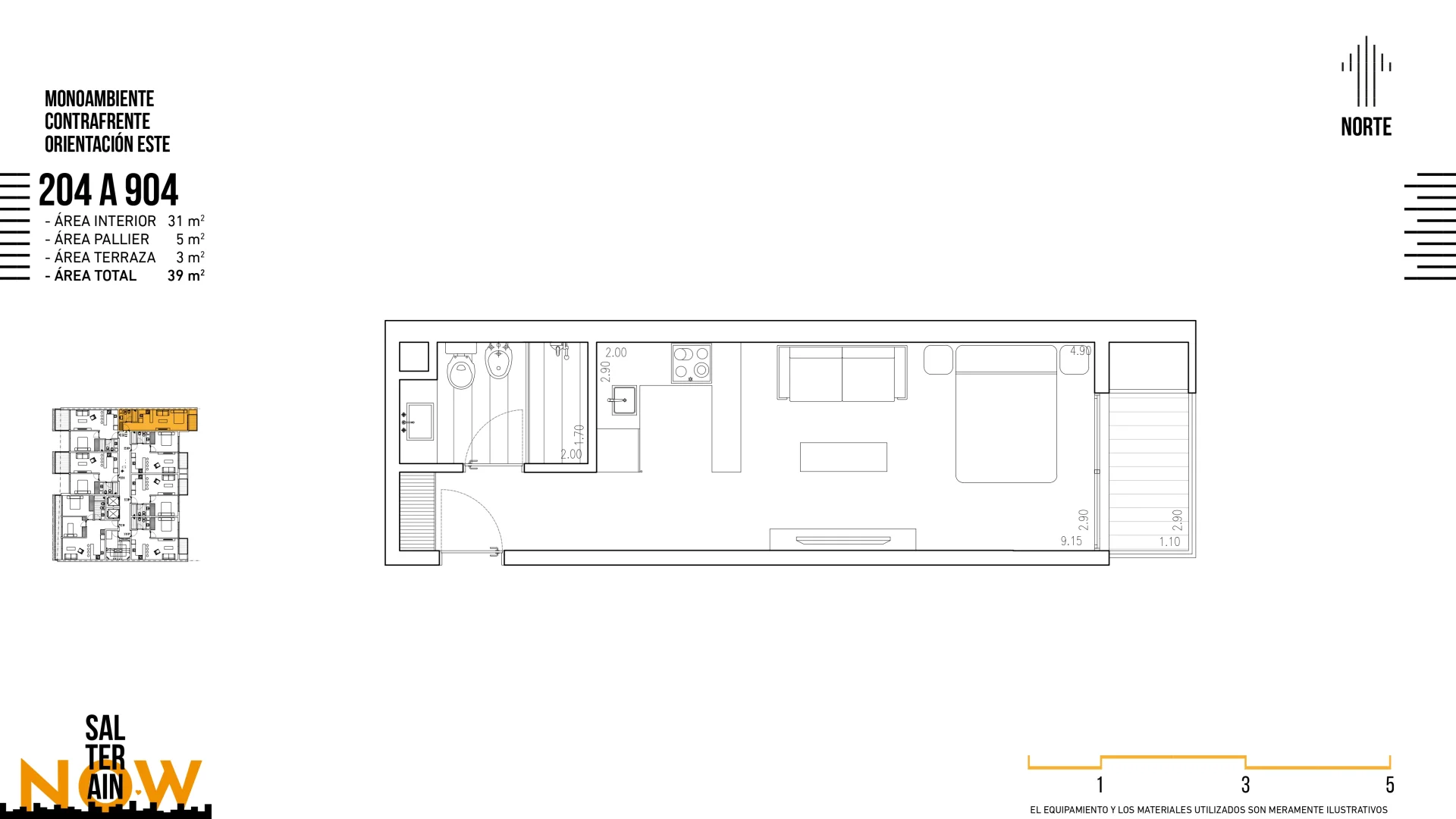 Ambiente con cocina integrada y un baño completo. Terraza.