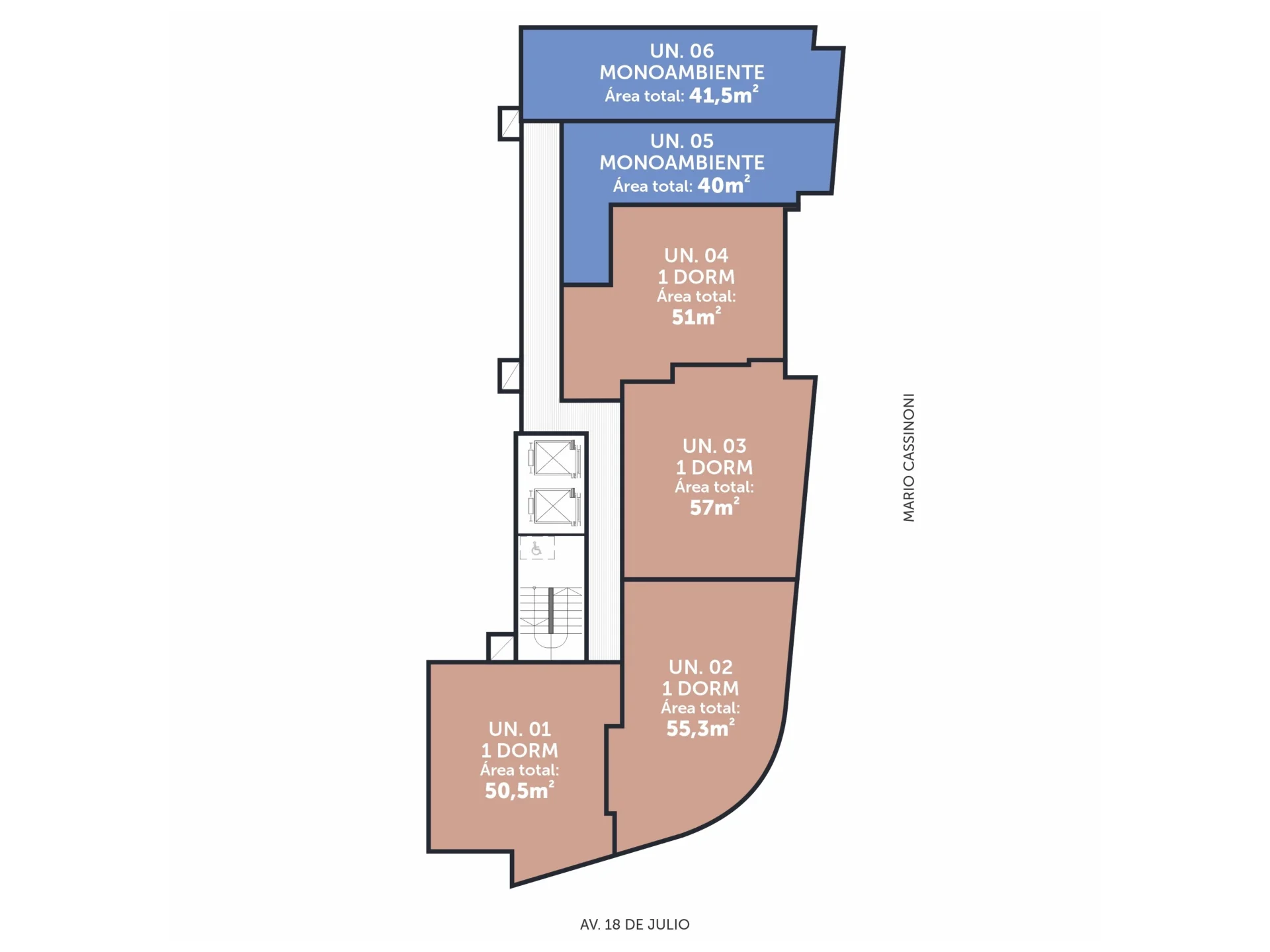 Se trata de una moderna torre de 13 pisos con 60 apartamentos: monoambientes, de 1 y 2 dormitorios.