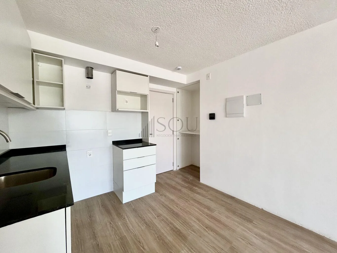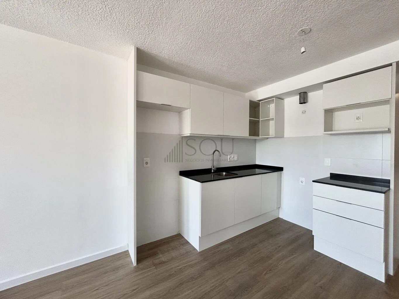 Cocina integrada con muebles bajo mesada y aéreos en MDF melamínico.