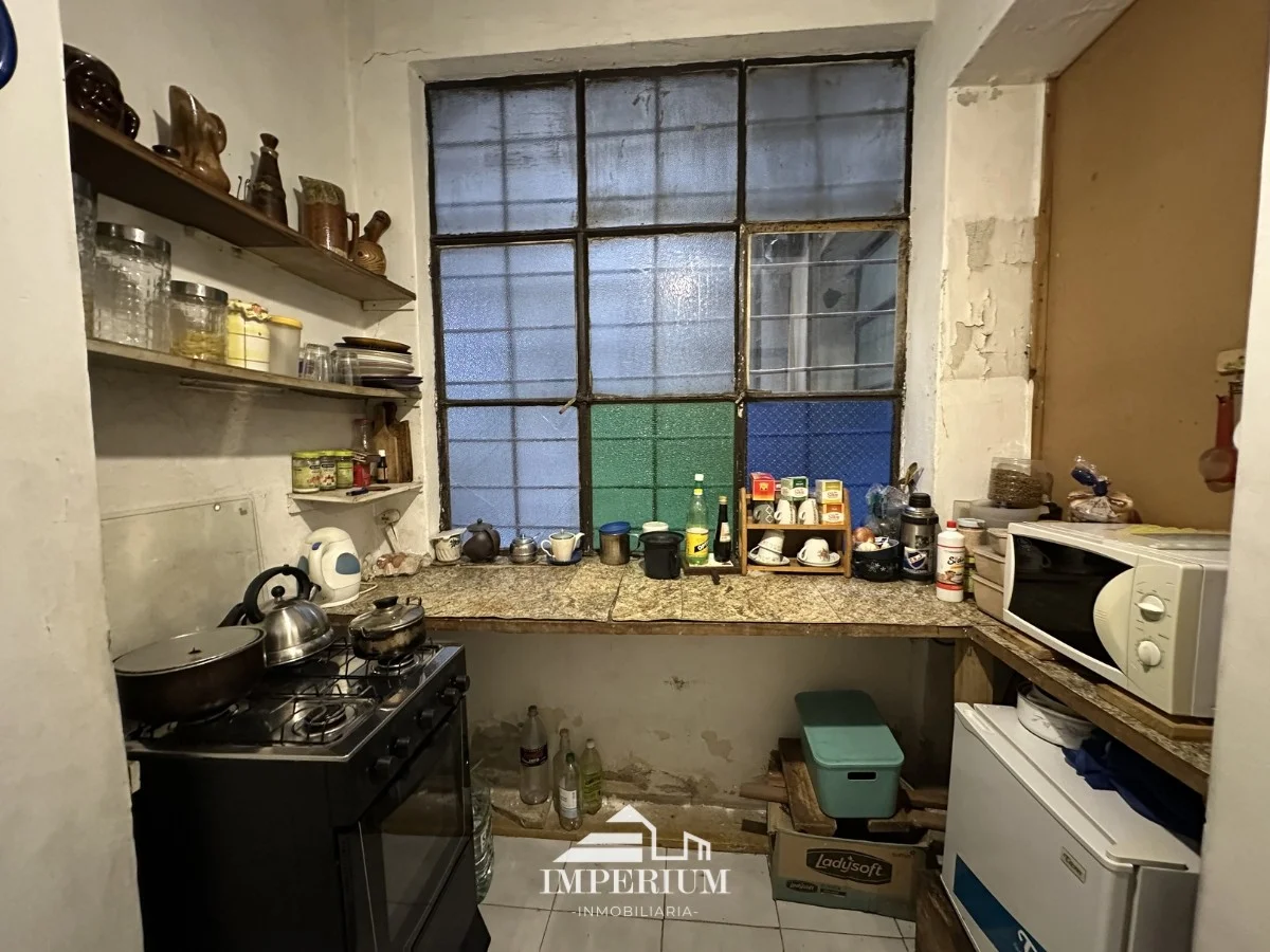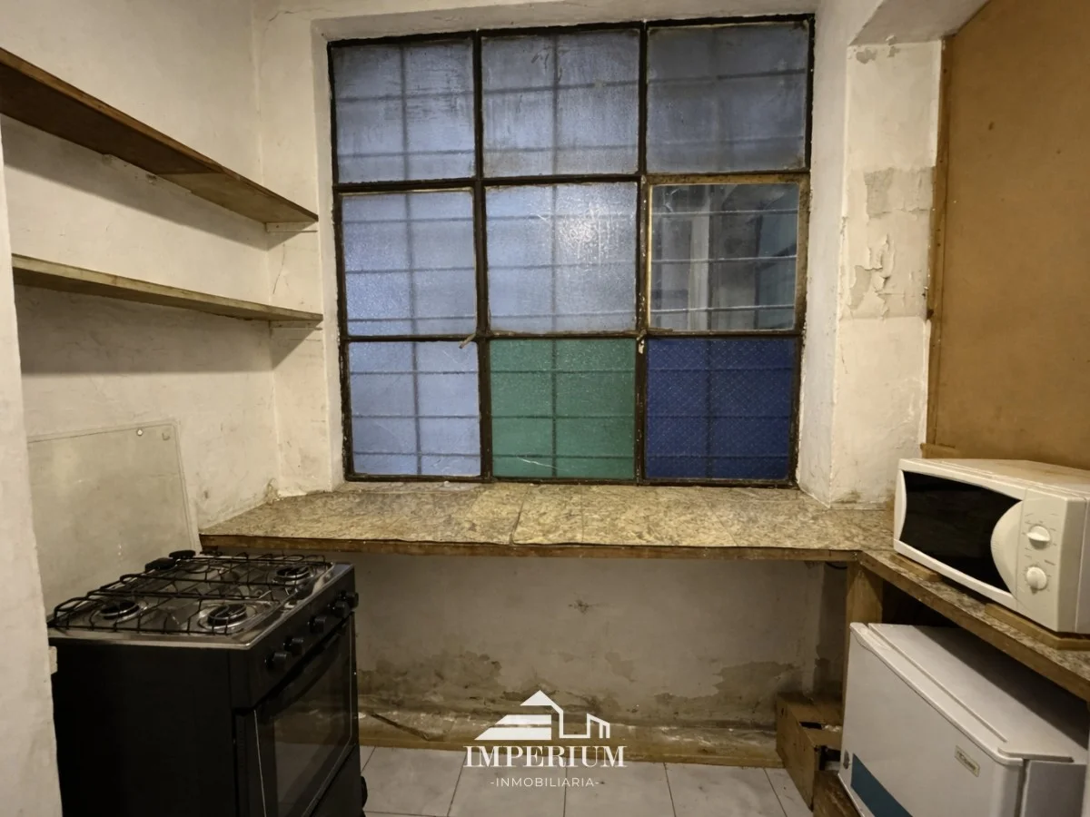 Apartamento de un dormitorio a reacondicionar en Ciudad Vieja, actualmente utilizado tanto como oficina como vivienda. Al ingresar, se presenta un amplio living que hoy funciona como área de trabajo. Hacia el fondo, se accede a un comedor espacioso que conecta con el resto de los ambientes. A la derecha se ubica el dormitorio, con salida a un pequeño patio que aporta ventilación y luz natural. Desde el comedor, se ingresa a la cocina definida, equipada con muebles aéreos y ventana amplia hacia pozo de aire. A la izquierda se encuentra un baño completo. Ideal para quienes buscan reciclar y adaptar el espacio a uso residencial o profesional.