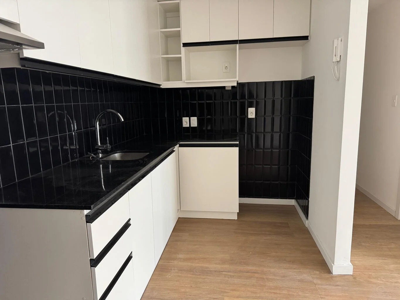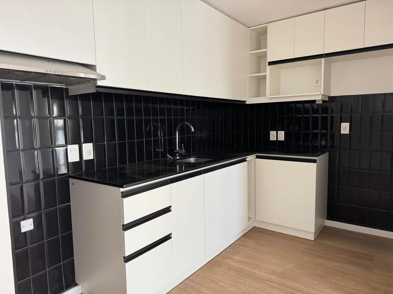 Cocina Semi Integrada con aéreos sobre y bajo mesada + Campana extractora.