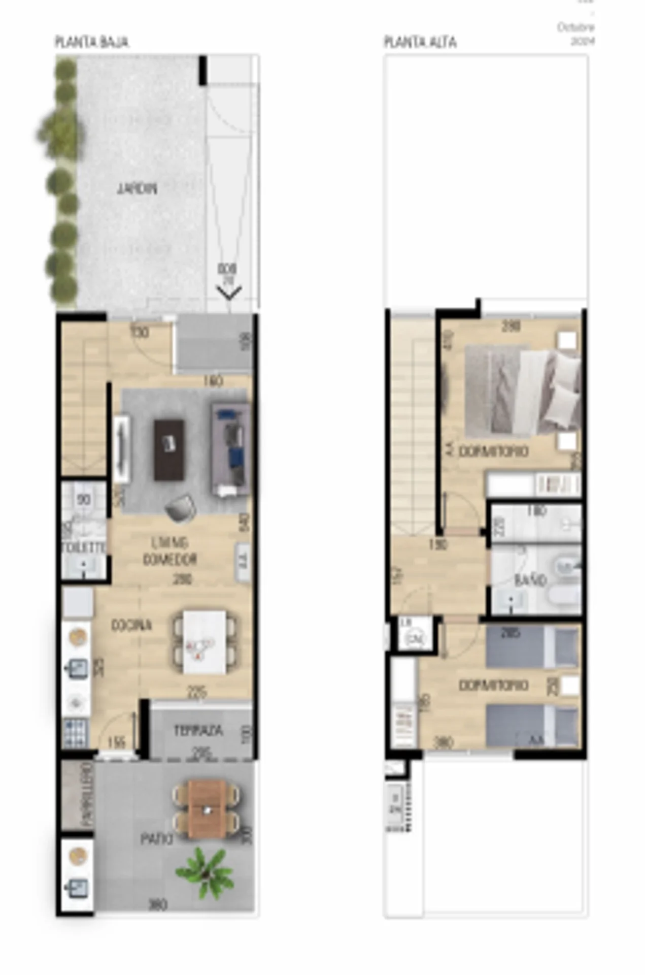 Se vende apartamento unidad 008, en planta baja de 2 dormitorios con orientación Sur. Pensado para el disfrute y el aprovechamiento de los espacios, cocina integrada con muebles aéreos y bajo mesada. 2 dormitorios, Baño con terminaciones contemporáneas y materiales de primera calidad, 1 toilette. Previsión de aire acondicionado en living y dormitorio. Aberturas de aluminio, terminación color negro con cortina de enrollar integrada, pavimento vinílico de alta resistencia en listones símil madera. Cuenta con patio y jardín.