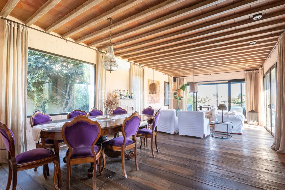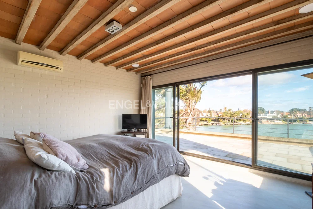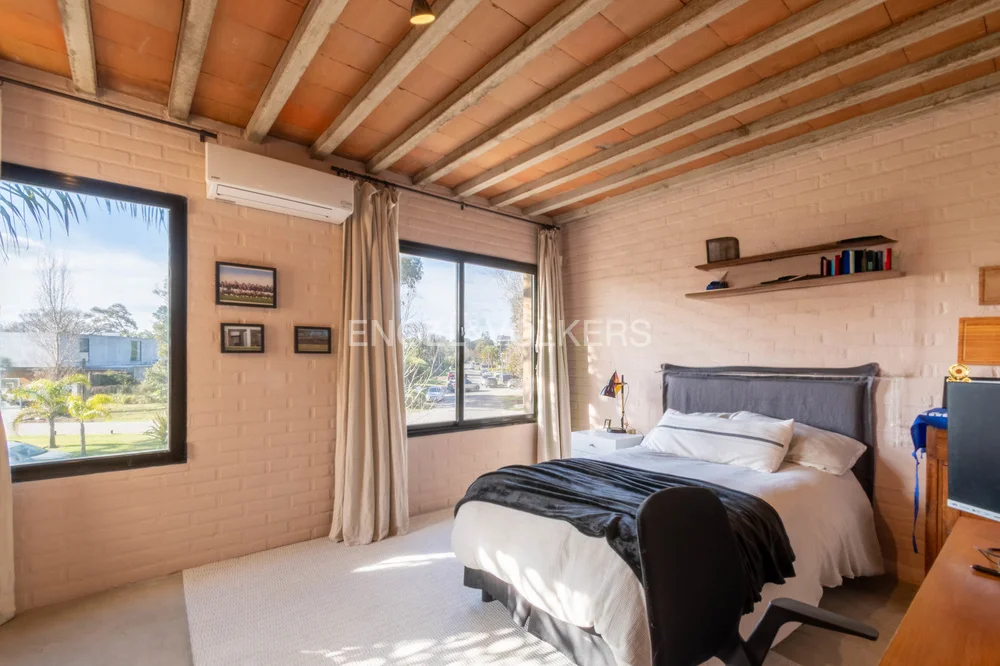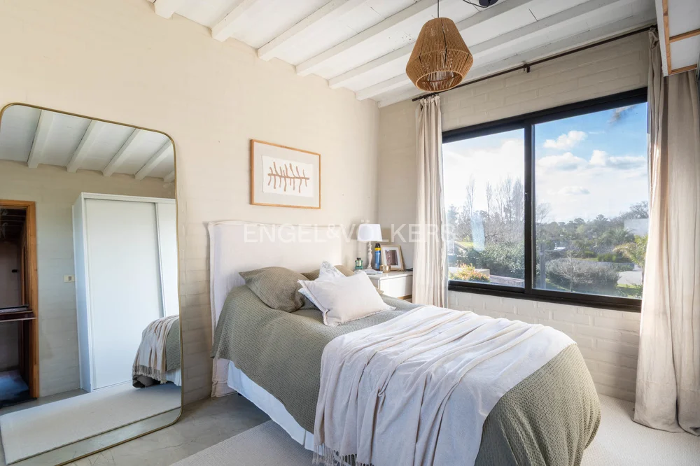 En planta alta ofrece cuatro dormitorios, el principal en suite con vestidor, y otros tres que comparten un baño, todos con muy buenas vistas al entorno verde y al lago.