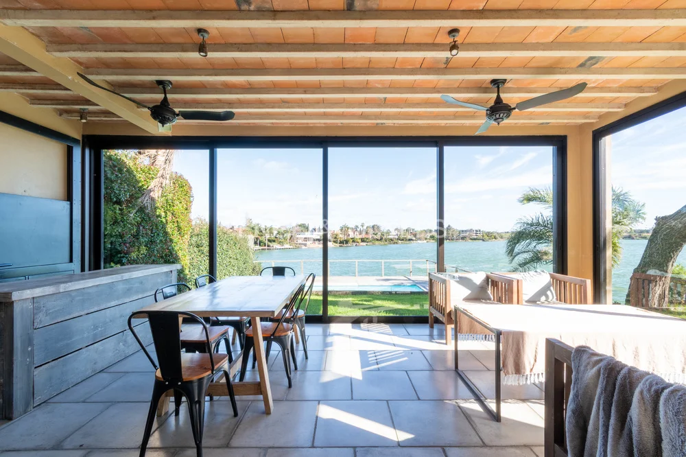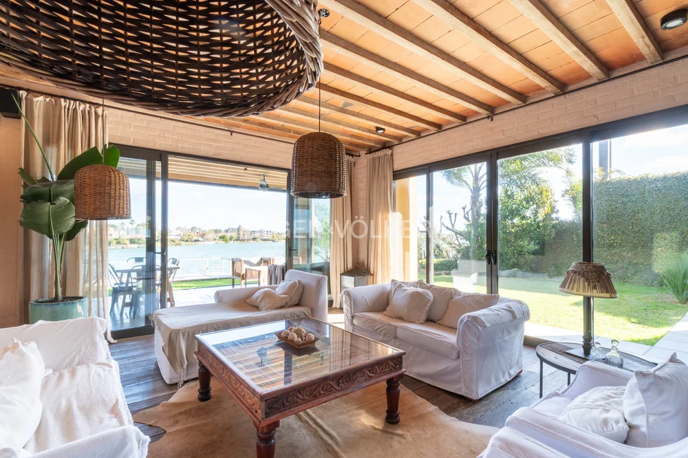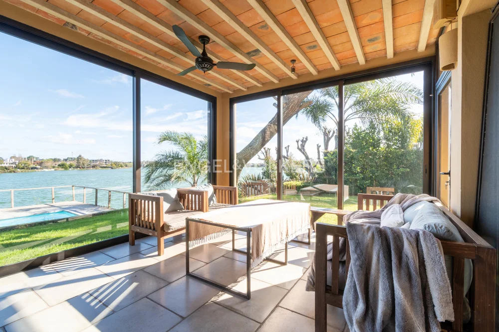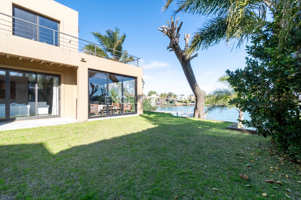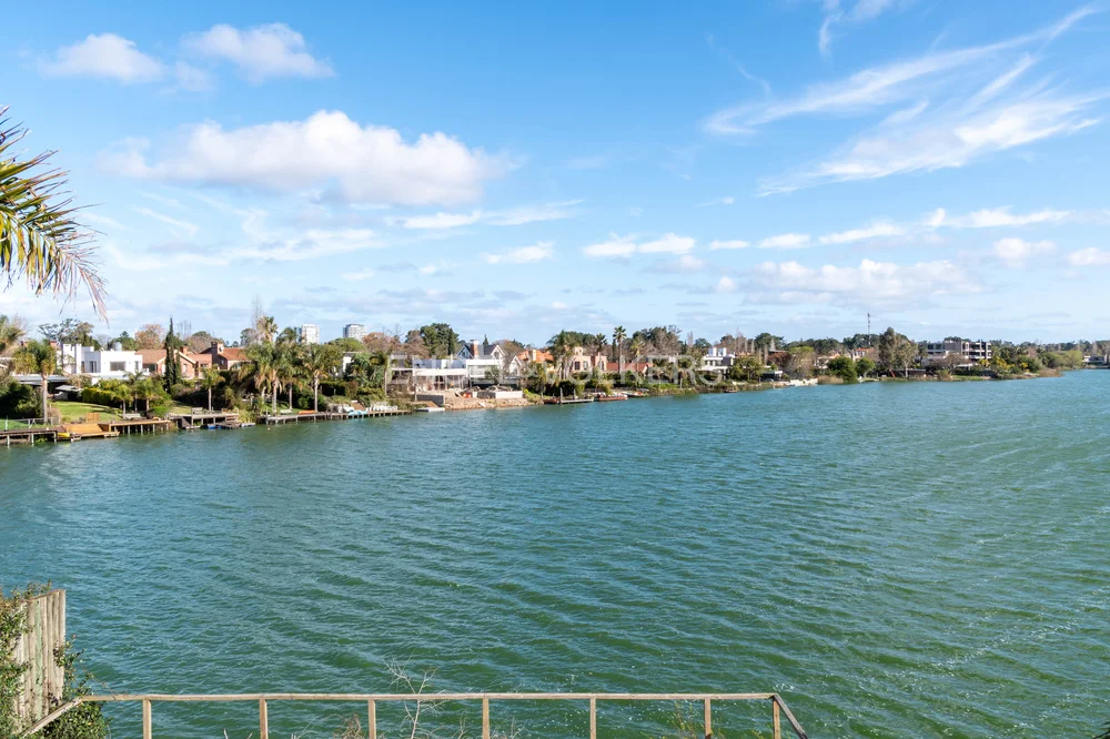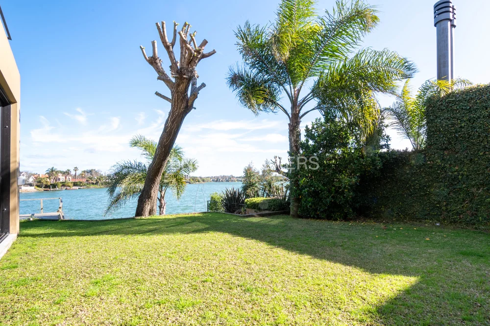 En el exterior se destaca un divino jardín con cuidado diseño de paisajismo e iluminación, que desciende hacia el lago, con piscina y sistema de riego, ofreciendo un entorno privado y sumamente disfrutable.