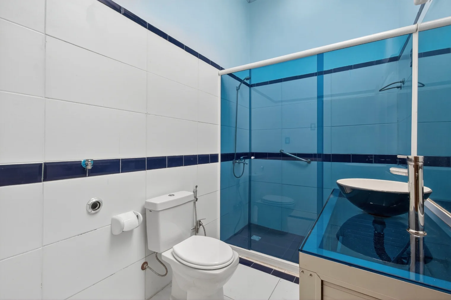 Baño secundario pequeño en la barbacoa práctico para uso de apoyo