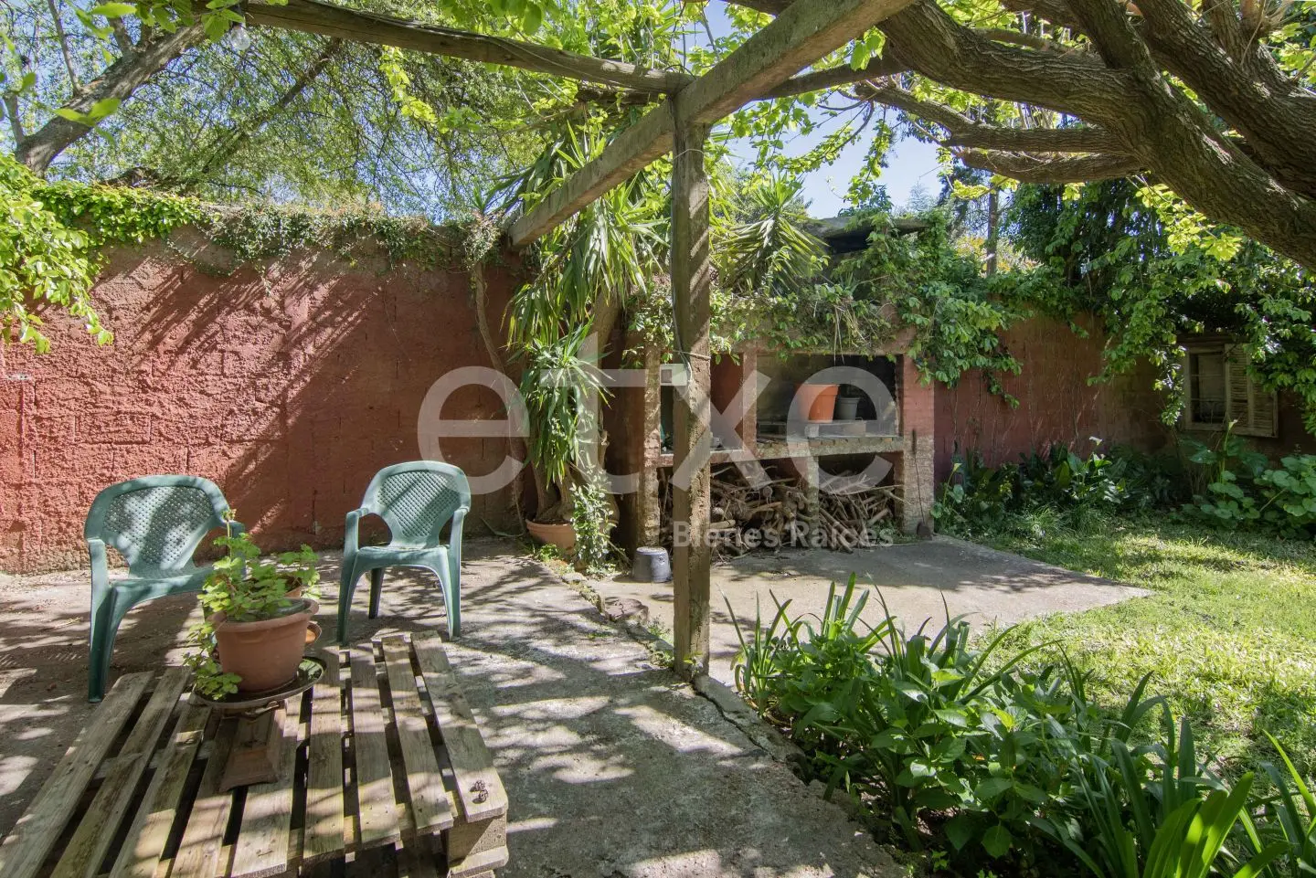 Gran jardín con depósito y parrillero, ideal para disfrutar del entorno verde y la tranquilidad de la zona.