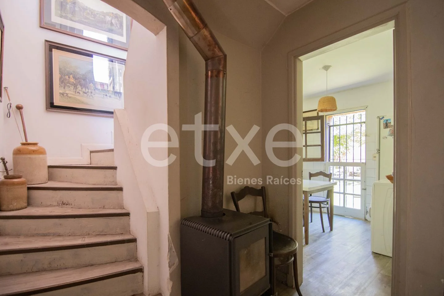 En planta baja, hall de distribución con estufa de alto rendimiento, living con estufa a leña y salida directa al jardín. Un dormitorio y baño completo, con la posibilidad de utilizar el dormitorio como estar o escritorio. Cocina definida con acceso al fondo.