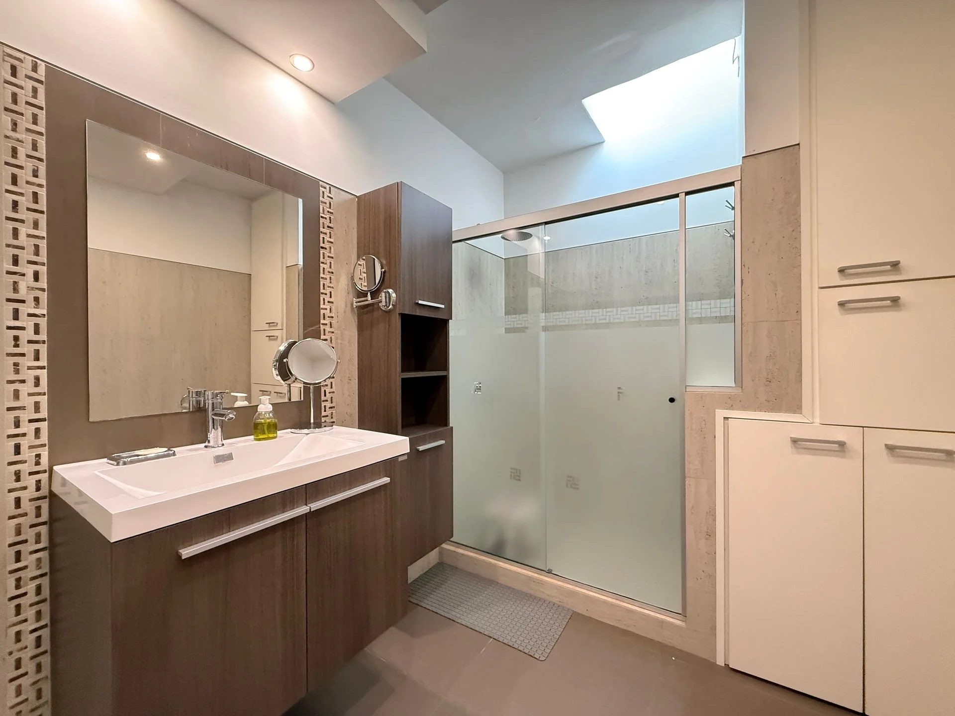 Baño completo amplio con buen lugar de guardado hecho a nuevo.