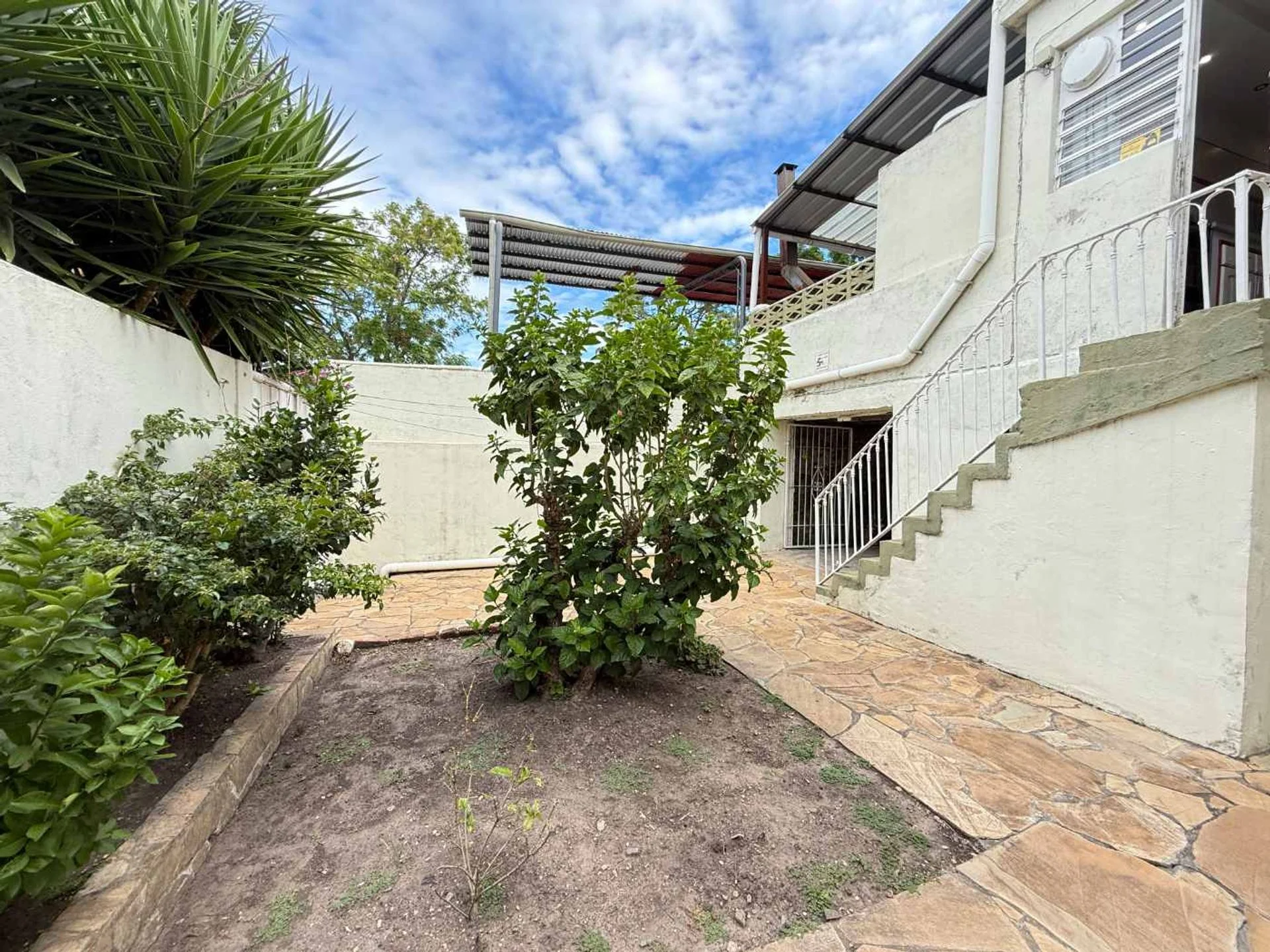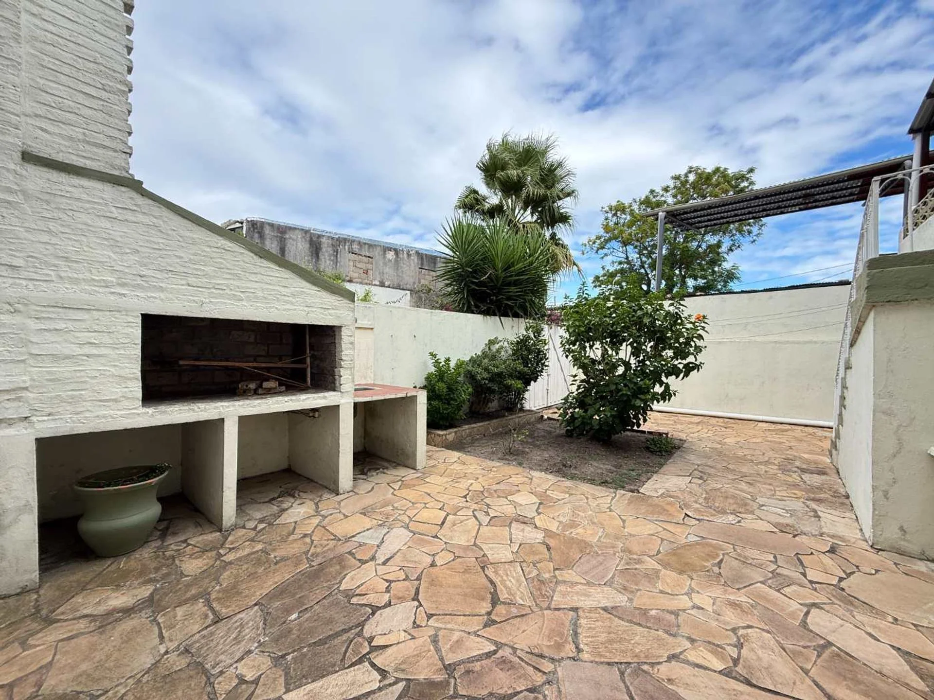 Patio con muros perimetrales en altura brindando privacidad y seguridad a la propiedad.