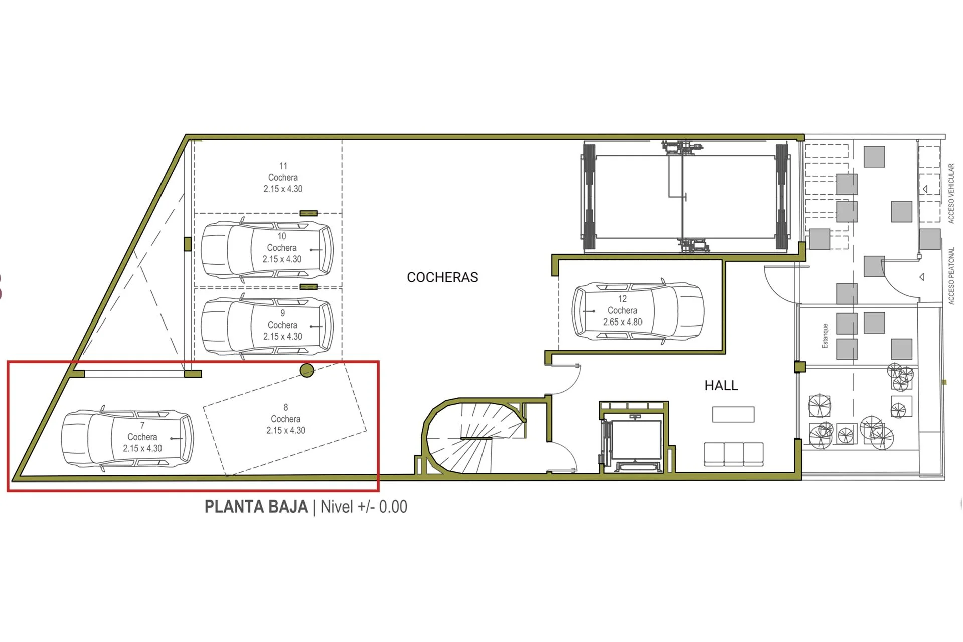 Dimensiones 2 cocheras de 2.15 x 4.30m