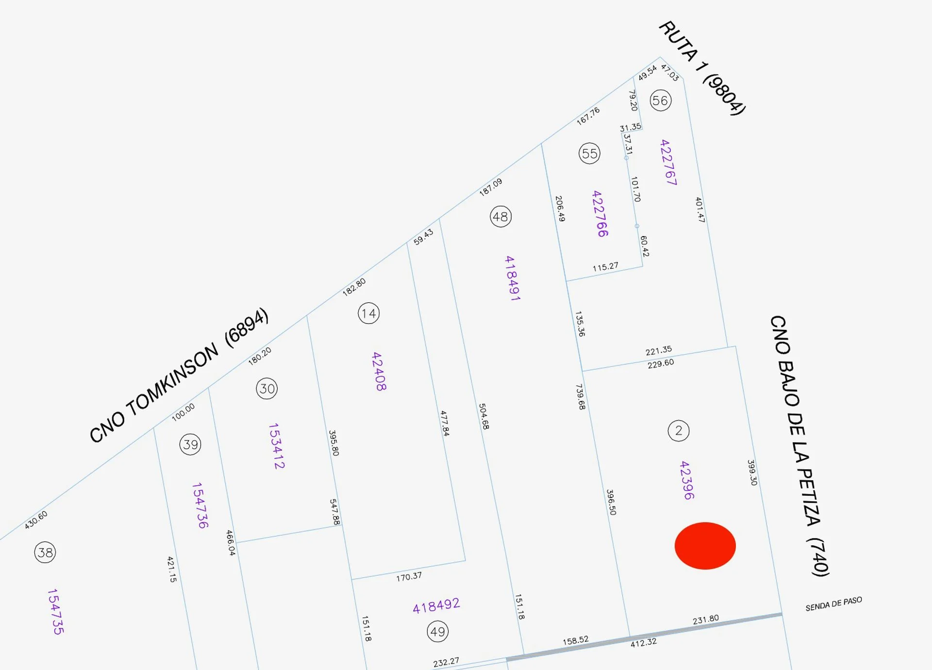 *Frente: 399 m sobre Camino Bajo de la Petisa