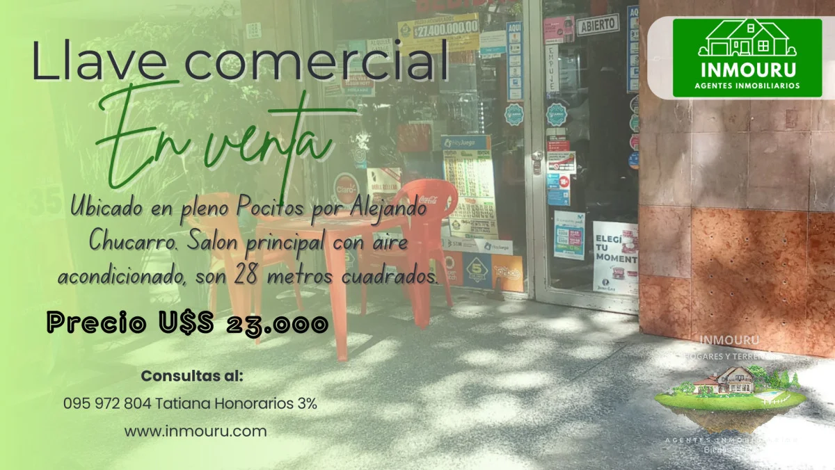 Venta de llave comercial en Pocitos Precio de la llave U$S 23.000 Precio de alquiler $ 23480 Garantía: Depósito de 6 meses, es negociable. Cuenta con un salón principal con vidriera a la calle con aire acondicionado, piso vinílico a nuevo. Son 28 metros cuadrados con baño y pequeño depósito. Se vende con góndolas metálicas, vitrinas de vidrio, 3 heladeras y caja registradora. Incluye mobiliario, mesa playera con sillas, cartelería y mercadería. Está ubicado en Alejandro Chucarro y Manuel Vicente Pagola. En pleno pocitos con gran afluencia de colegios, edificios, locales comerciales y transporte Honorarios 3% Agente Tatiana Referencia Interna : Tera-2060
