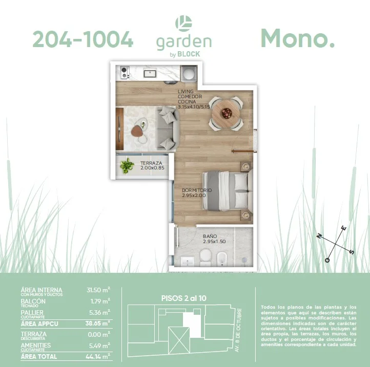 Venta de monoambiente en Garden - La Blanqueada, ubicado en Av 8 de octubre a pasos de la Av. Luis A. de Herrera, punto estratégico de la ciudad que te facilita el día a día.